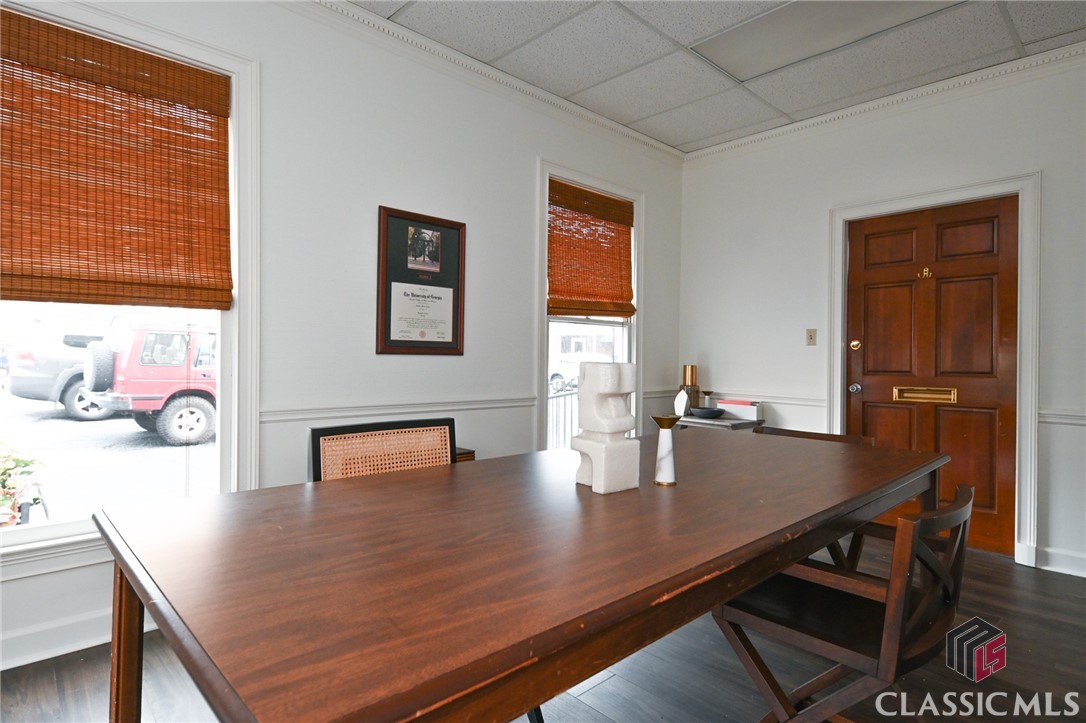 Two suites currently for sale in the heart of Five Points. These offices are renovated and on the ground floor and are rarely available for sale. There is ample parking available and the offices both feature their own bathroom, kitchenette, and front and back foyer. Location is key to these units (two doors from the fire station) and allow employees or tenants to walk to numerous restaurants and EarthFare. Don't miss this great opportunity to relocate your business to the best location in Athens.