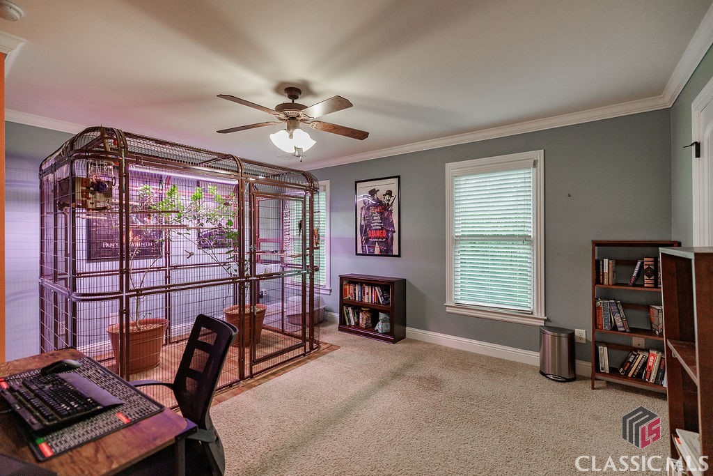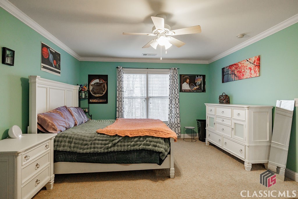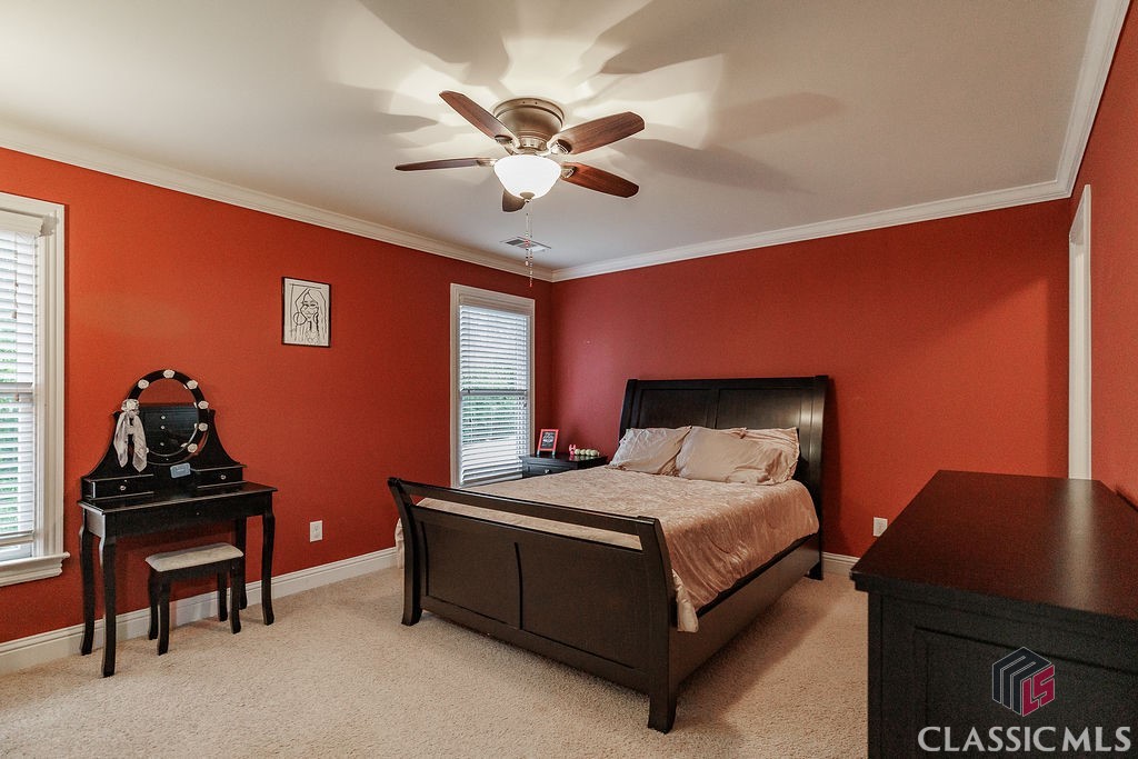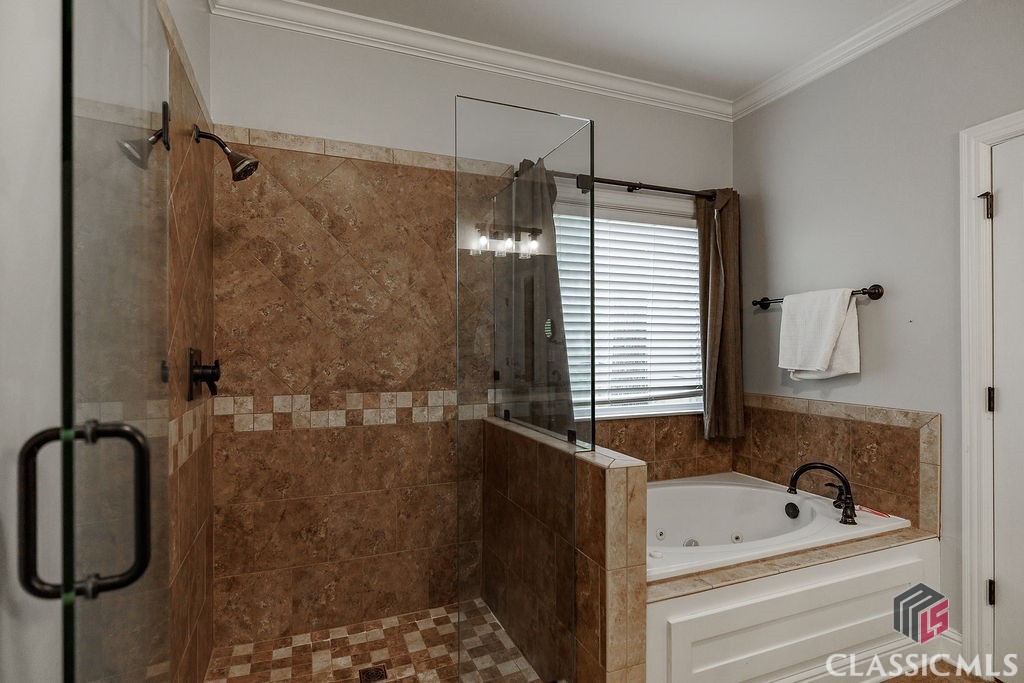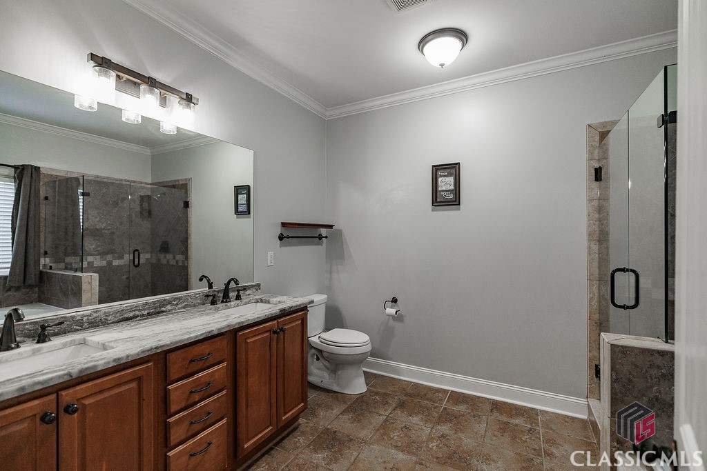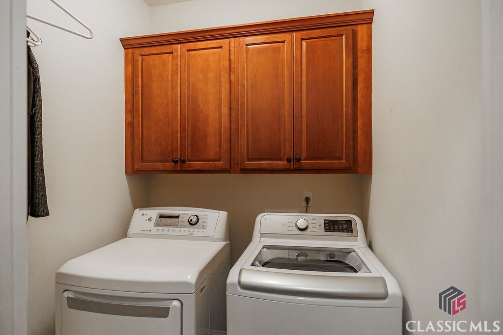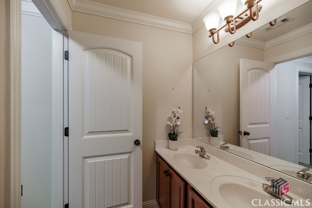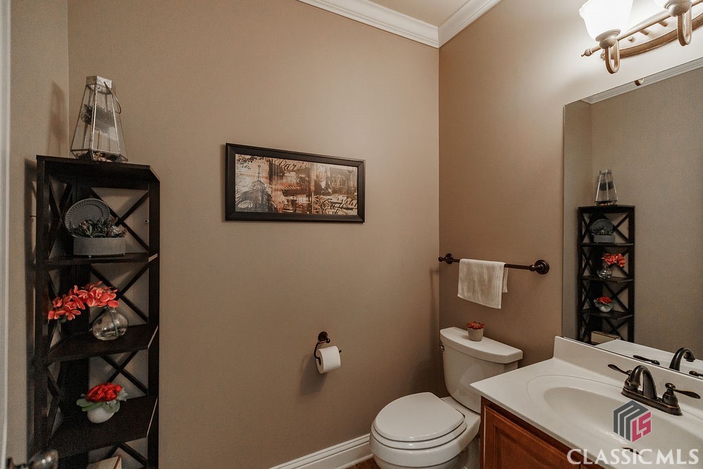 The main floor also includes the owner's suite, which boasts a walk-in closet, a trey ceiling, and plenty of natural light. The attached bath is a true retreat, offering dual sinks, a whirlpool tub, and a separate tile shower. A laundry room and a half bath complete the main level.