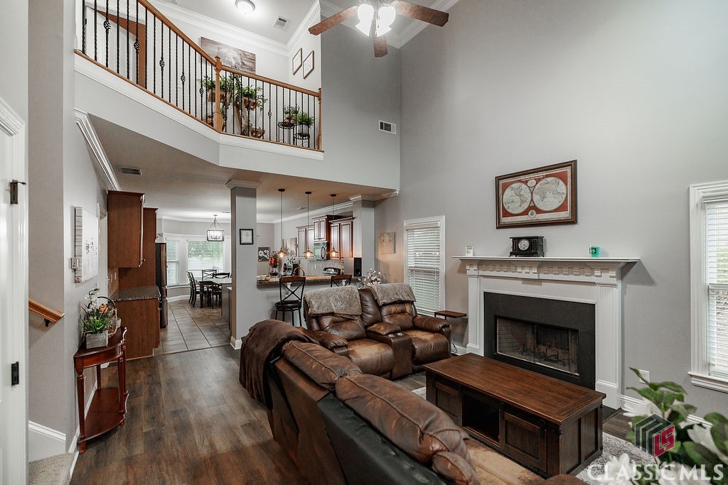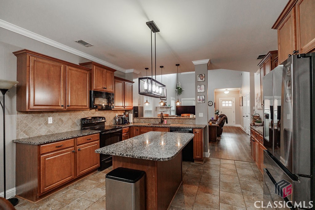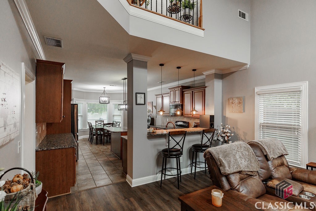 Nestled in the highly sought-after West Athens neighborhood of Towns Walk, this beautifully maintained home offers an inviting blend of comfort and style. As you enter, you'll be greeted by soaring ceilings in the living room, which features easy-care, laminate floors and a cozy wood-burning fireplace. The open floor plan seamlessly flows into a spacious kitchen, complete with granite countertops, a tile backsplash, a large island, and a dining area with access to the private backyard.