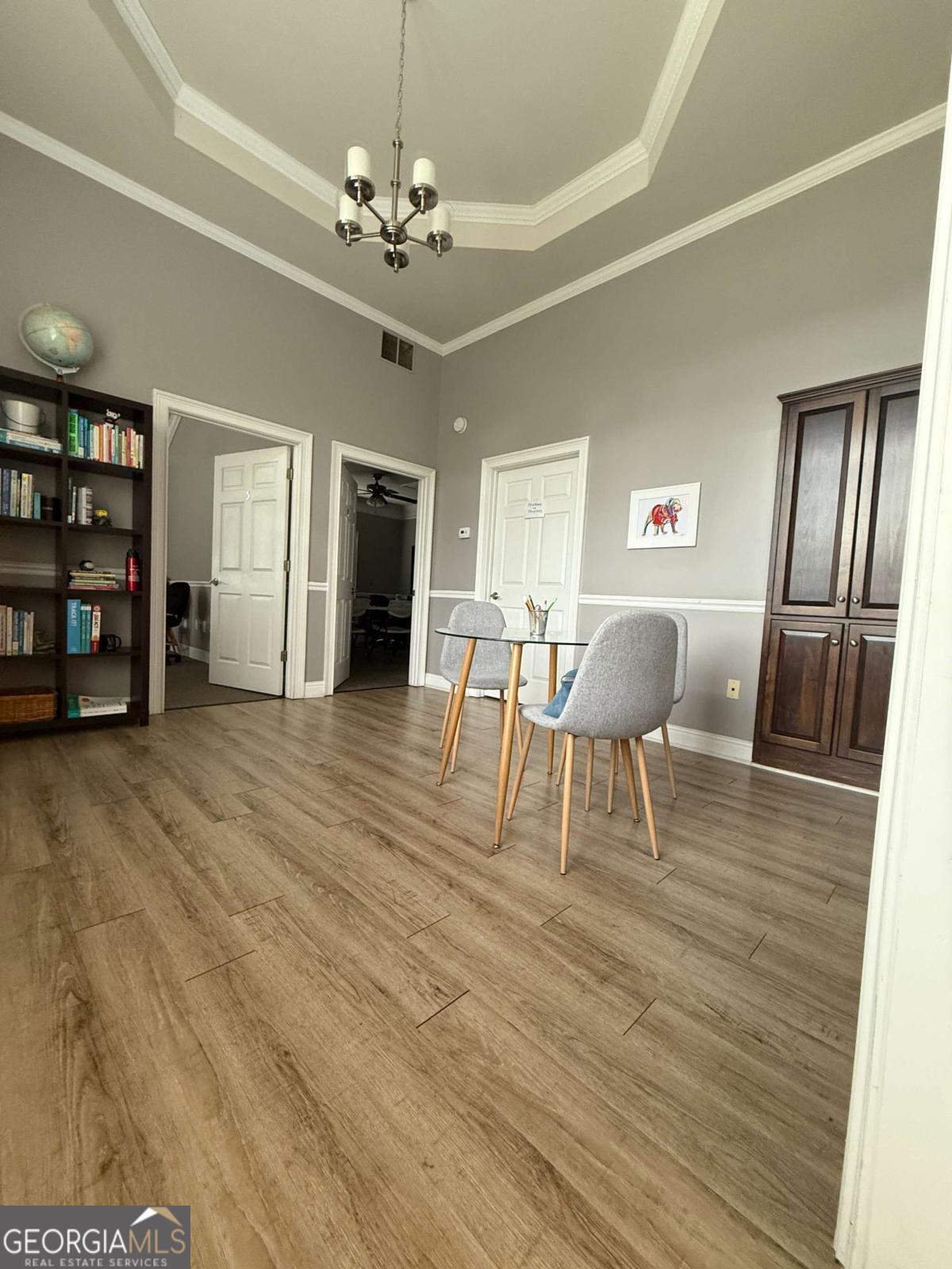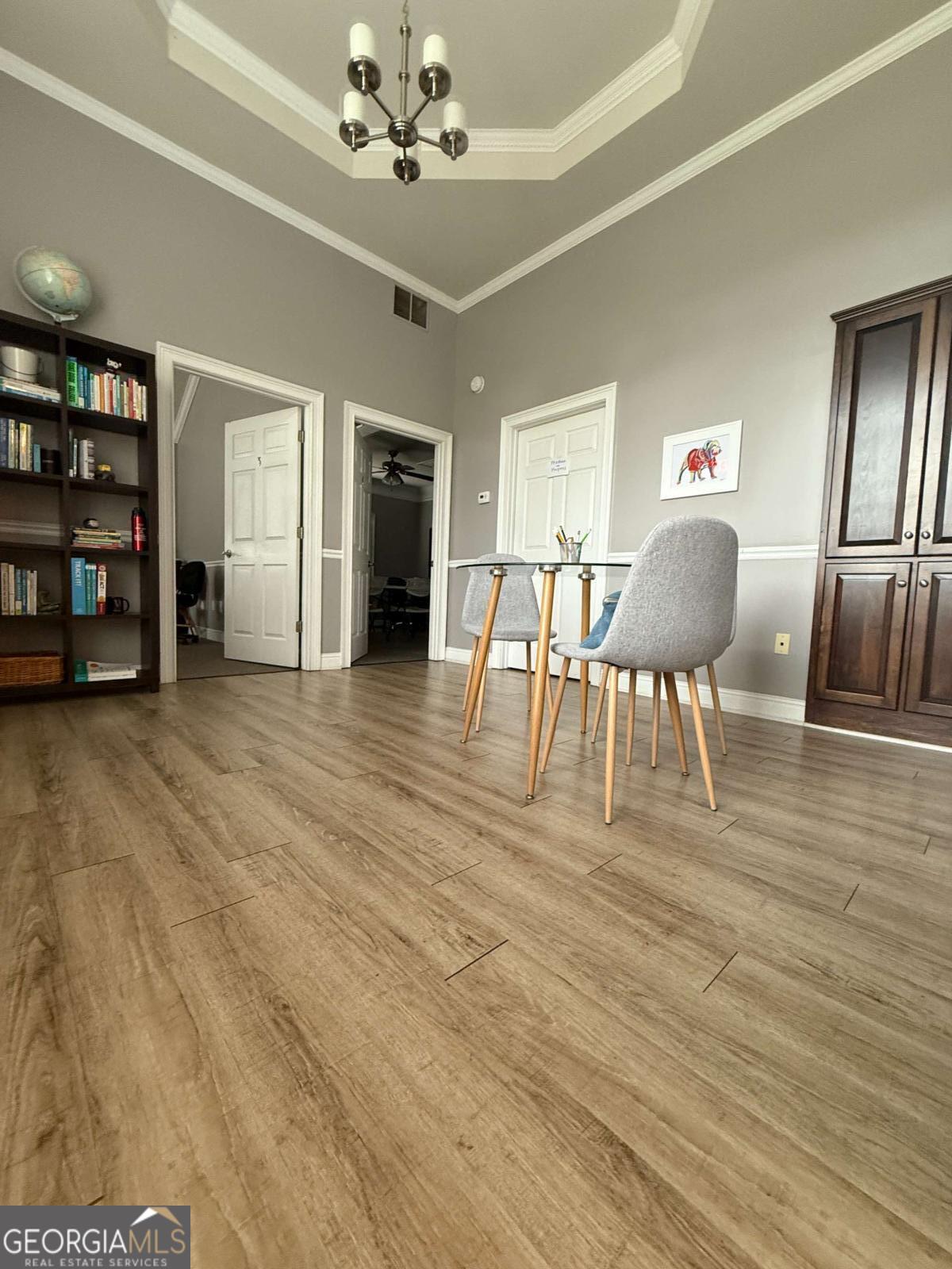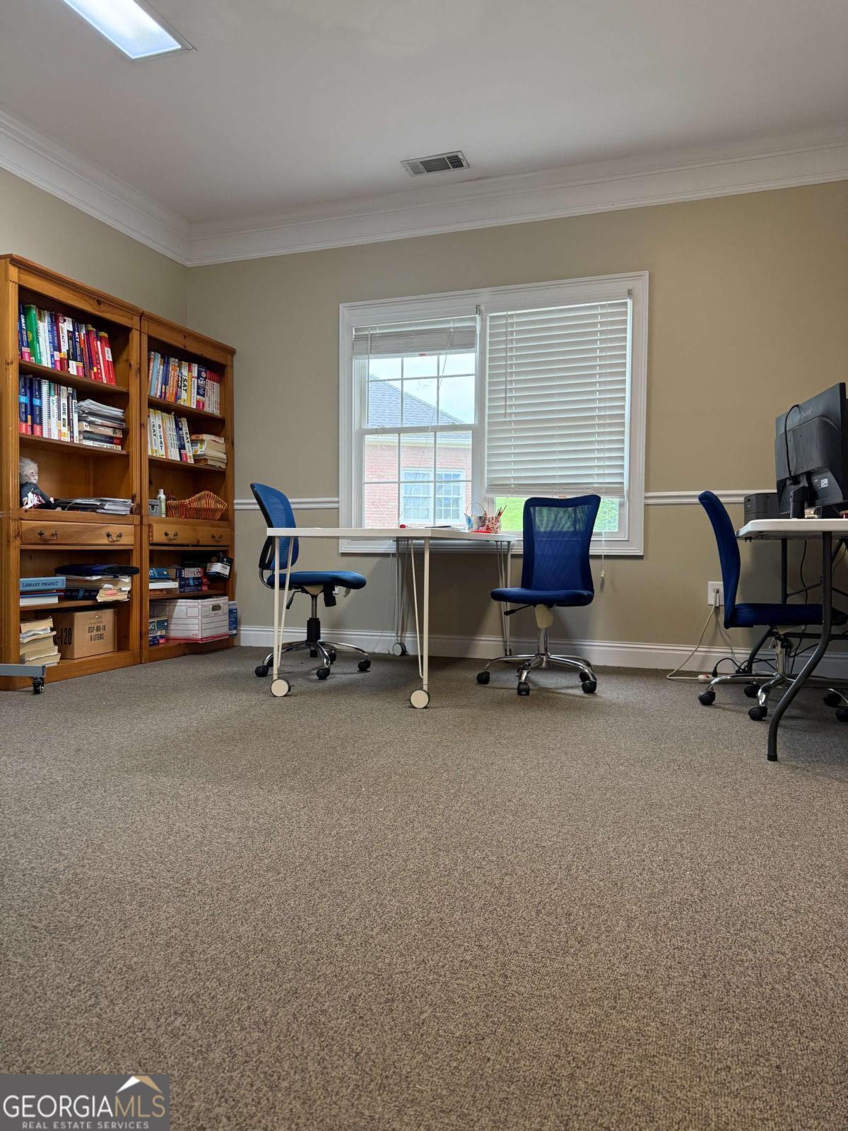 Large office unit in Resource Valley, Athens' Premier Office complex. Ideal location on the Clarke/ Oconee border. This unit is the entire building offering 1520 sq. ft. of space. Two front entrances offer unique flexibility. The office is very inviting with high ceilings, multiple windows including transom windows, and mostly LVP flooring. Space includes both private offices and conference rooms. Additionally the building is the first one on the right as you enter the complex, easy to find and benefits from the formal entry and green space.