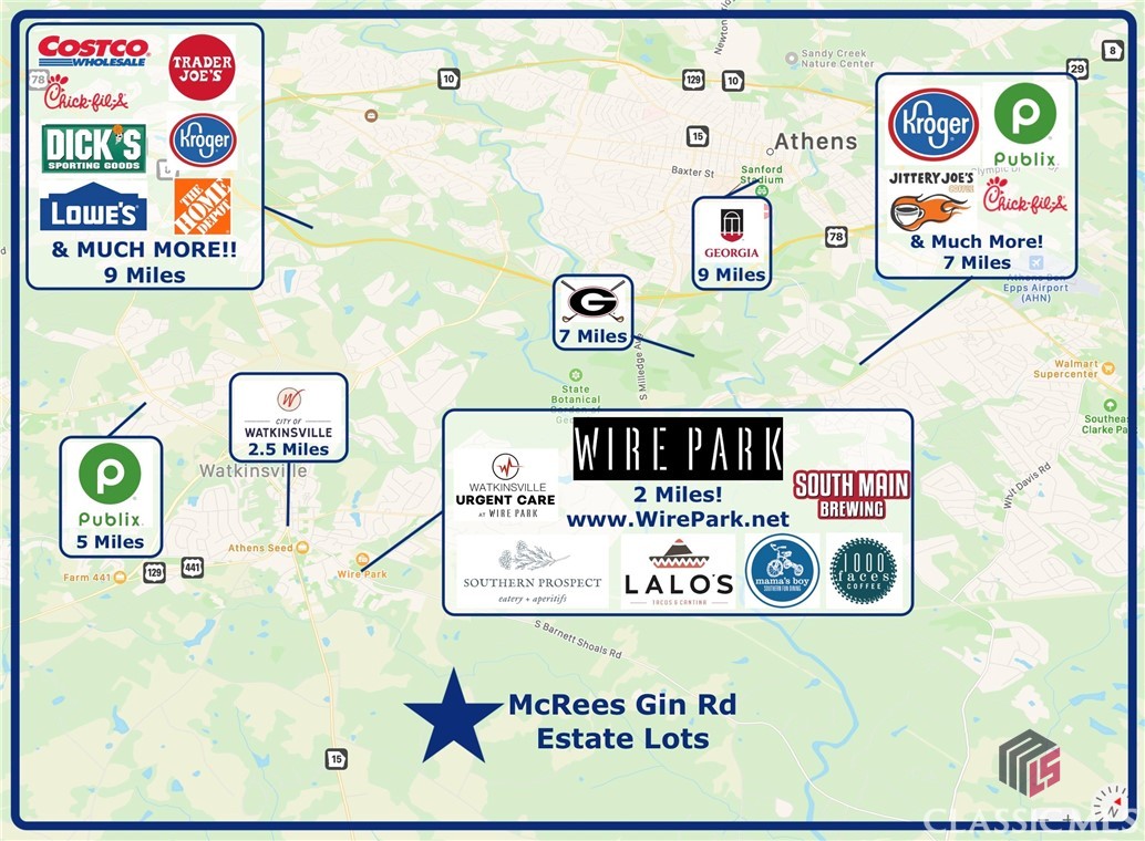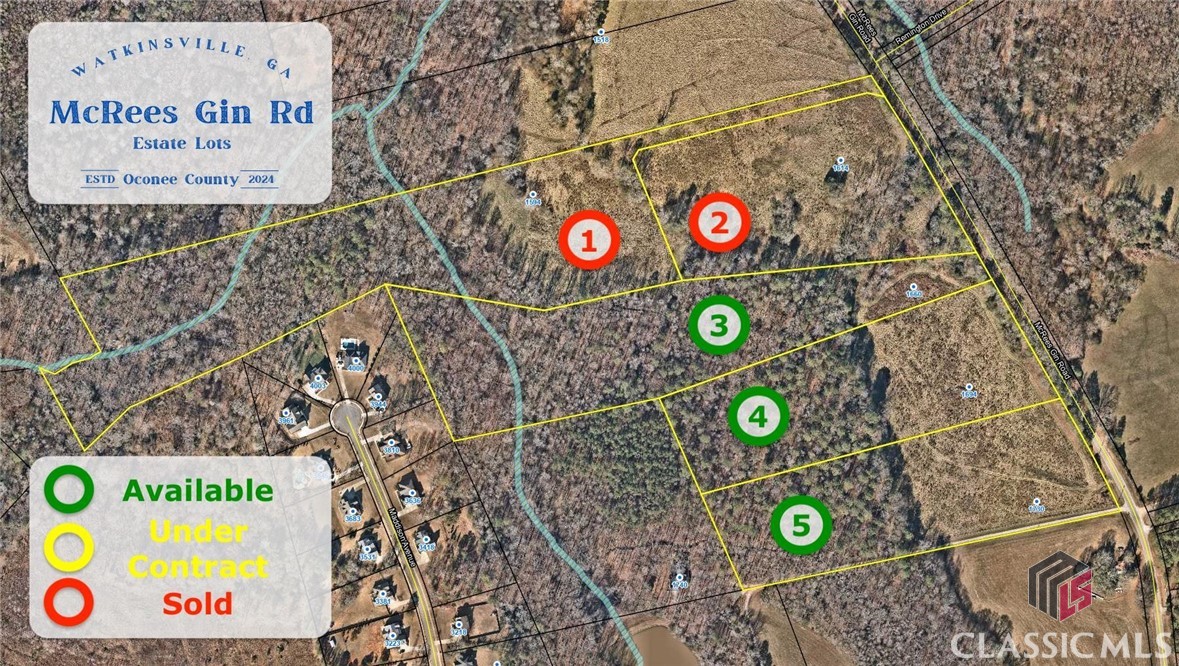 Beautiful 12 Acre Estate Tract in Oconee County with some open pasture up front, mature woods, rock outcroppings rolling hills & flowing creek! At only 2 Miles from Watkinsville's newest destination hub, WirePark, and surrounded by other large tracts of land, this property boasts a peaceful rural setting without the long commute! Designated as Tract 3 of 5 on newly completed survey. Tracts 1-5 are also 10+ Acres, further establishing the immediate surroundings as estate homes - not high density subdivision / developments! McRees Gin Rd offers beautiful scenery and is convenient, but not busy, making this an ideal location to buy dirt and build your forever home! Other adjoining parcels also for sale. Inquire for details! Be sure to click virtual tour link for video tour of the property!