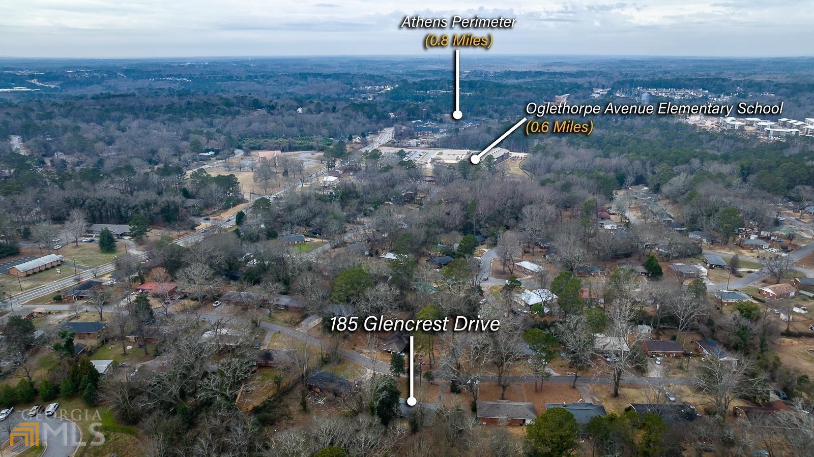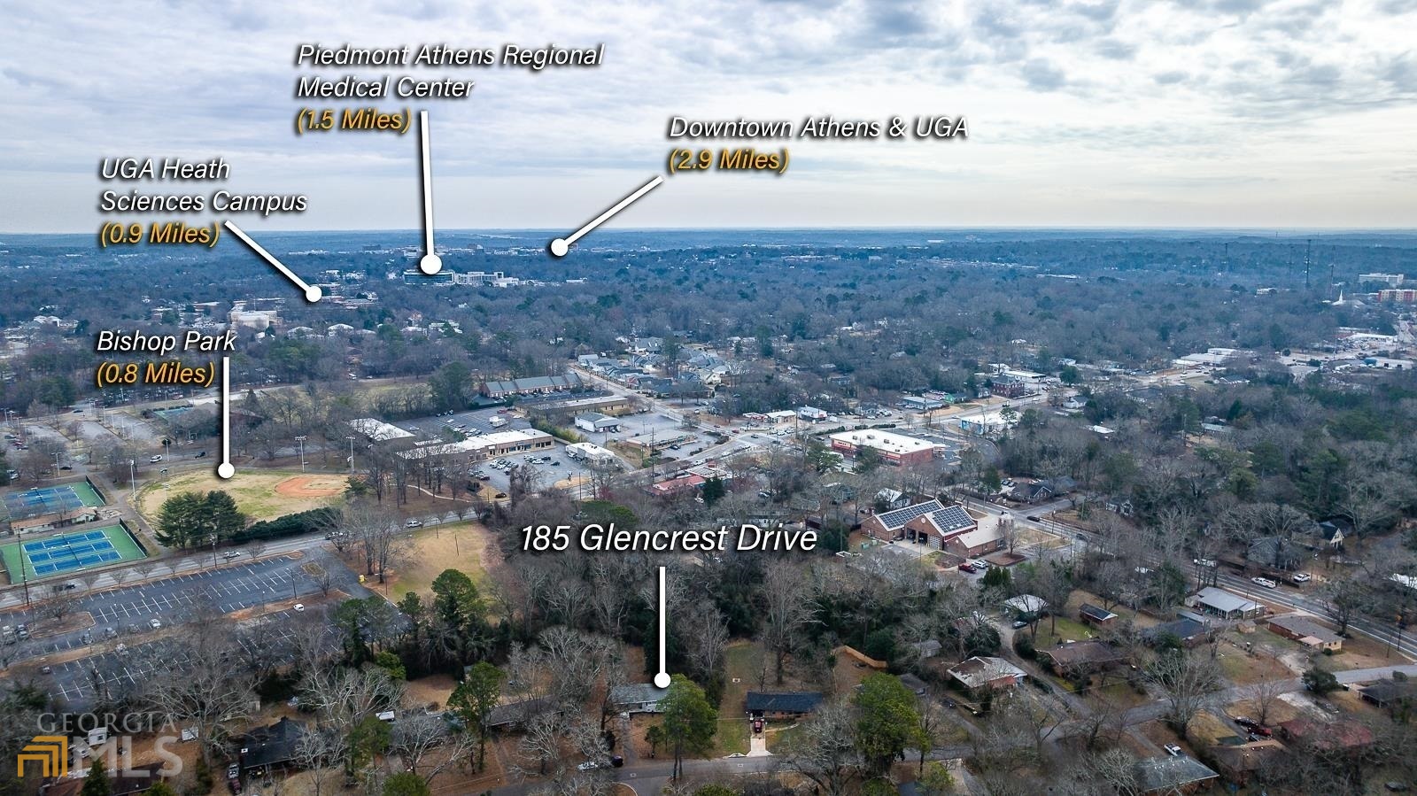 Not just in-town, it's in Normaltown! A highly coveted area loved by the locals for its sense of community and eclectic vibe. Glencrest Drive is a quiet cul-de-sac street a block from UGA's health sciences campus and Bishop Park and only a short walk to the Prince Avenue corridor, the neighborhood's commercial center with Athens based Bars, Restaurants, Grocery Store, Hardware Store, Breweries, Cafes and home to Piedmont/ ARMC hospital. 185 Glencrest Drive is a classic mid-century ranch home with an all brick exterior and covered porch entry on a large level lot which borders the YMCA. If features 3 bedrooms/1.5 baths, generous kitchen/ dining room combo, and large living room. True to the original floor plan, one of the bedrooms includes the back entrance/ glass sliding doors and seems to fit better in today's lifestyle as an office or flex space. Renovations include new paint inside and out, new granite countertops and new stainless steel appliances (gas stove), new fixtures, refinished original hardwood floors, updated bathrooms, and a new 16x12 deck. Additional perk, specific this property, a Starter greenhouse so come with your green thumb. Call your realtor, this is a great opportunity to call Normaltown home.