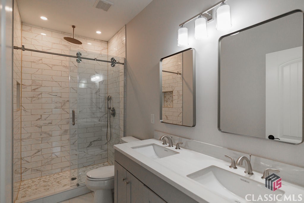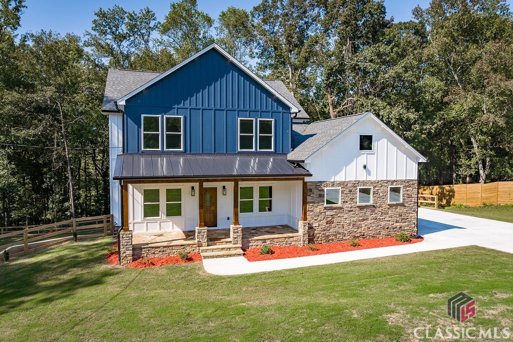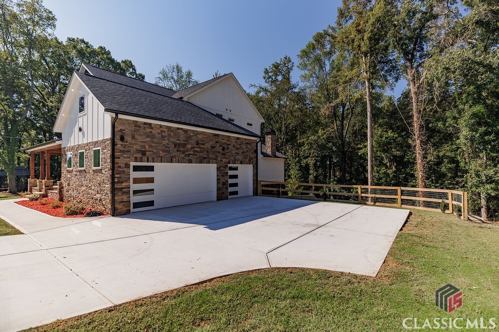 Welcome to your dream home, 232 Roquemore Road! This stunning New Construction Modern home, nestled on 2 acres of wooded/open lot, surpasses the allure of new construction with its impeccable design and desirable open-concept layout. Offering you 5 bedrooms, 4 full baths and 1 half bath with 5284 sq ft of gorgeous space! The front porch showcases upgraded exterior light fixtures, recessed lighting, flagstone and beamed ceilings. Step inside to discover a spacious main level anchored by a large family room adorned with a cozy fireplace, accent walls and an open concept to the kitchen and dining. A chef's kitchen awaits you with an abundance of custom cabinets, ample counter space, oversized quartz island, farmhouse sink, pantry and an abundance of light. Upstairs offers the Primary Suite that accompanies a spa bath, dual sinks, soaking tub, separate tiled shower and an expansive custom walk-in closet. You'll also find 3 additional secondary bedrooms and 2 additional full baths. On the lower level you'll find a fully competed daylight basement with game/exercise/entertaining room with custom barn door, open space leading to exterior of home with an additional electric fireplace adorned with shiplap, recessed lighting and custom floating shelves. This home has all the upgrades including extensive premium stainless-steel appliances, tile, granite, marble, custom cabinetry, built-in's, floating shelves, designer lighting package, recessed lighting, upgraded fixtures, all tile showers with glass doors, shiplap, oak, pine, stack stone, 3 separate HVAC units for each floor and more. Every bedroom in this gorgeous home is SPACIOUS, INVITING, OPEN and FILLED W/ NATURAL LIGHT! This beauty is also filled with endless storage space and oversized closets. If outdoor entertaining is your thing, this home is just what you're looking for with an entertaining back deck thats screened in, wood mantle, stack stone fireplace, vaulted pine ceilings, accent lighting, aluminum railings, Trex enhanced decking and so much more. Three car garage with epoxy flooring and modern doors with a gazebo to top it off! This meticulously crafted home offers seclusion without the constraints of an HOA, yet close to urban amenities. Don't miss this opportunity to make this your dream home today!