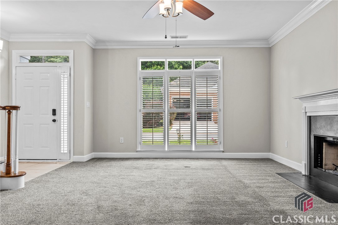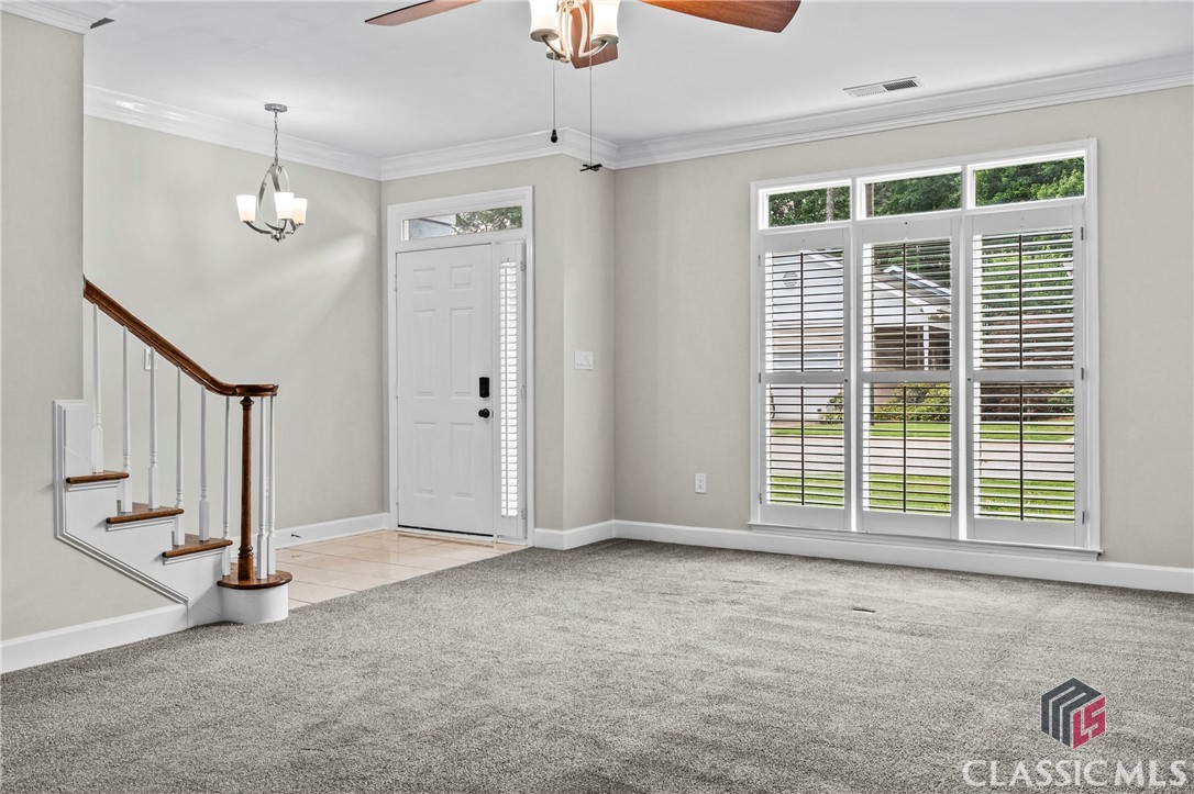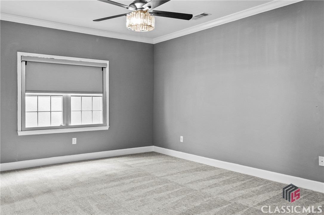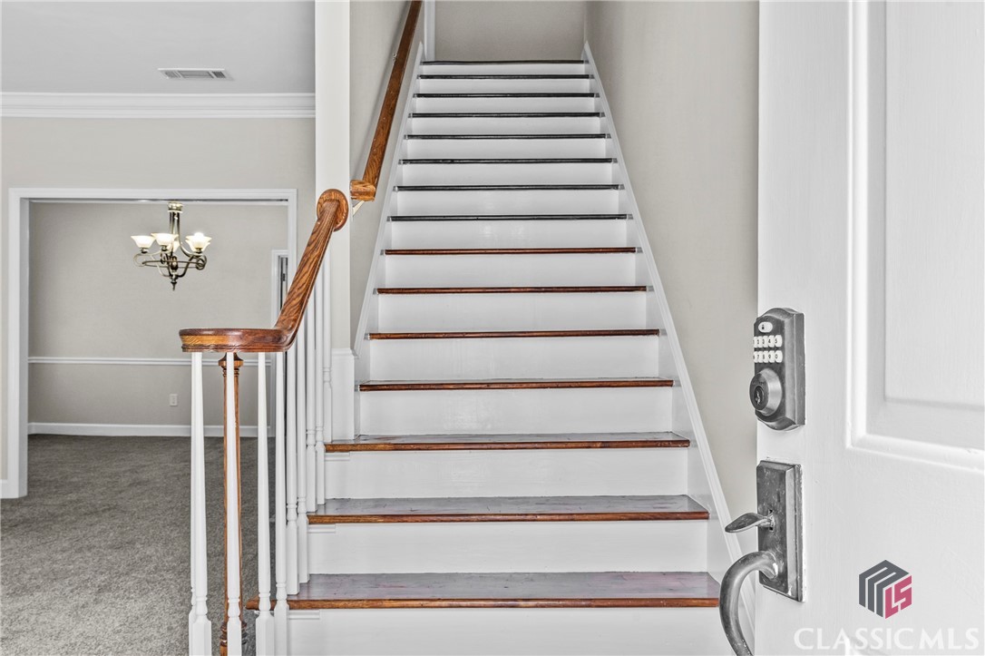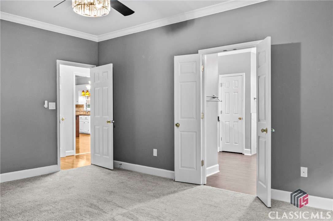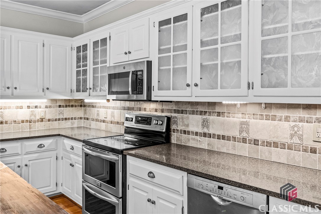 Athens Premier Gated Community, HOA covers water, sewage, building insurance, roof replacement, landscape services, pool maintenance and road maintenance. Flawless from top to bottom, this impeccably maintained residence maximizes livability with complete main level living, bonus secondary level living, and premium basement versatility. High ceilings, plantation shutters, light filled transom windows, and crown molding enhance elegance and character in this traditional home. Its a classically designed home with living room, dining room, kitchen, laundry, sunroom, guest bathroom and master suite on the main level, for the most convenient layout. The truly traditional floor plan has purposeful living and dining rooms both serving their roles of formality and flexibility and flow seamlessly into the kitchen/sunroom located at the back of the home. There are never too many cooks in this well appointed kitchen where abundant cabinetry and countertop space are ready for duty. Being the perfect host comes easy with so many perfectly designed spaces in such generous square footage. The Primary suite is tucked away and is the only bedroom on the main level providing a private retreat with luxurious master bath (updated in 2024). The secondary level features two additional bedrooms, jack and Jill bath, and library with extensive custom shelving. A finished basement is a perfect play place for hobbies and/or in-law suite with its own full bathroom and exterior door to the covered patio. Manicured landscaped with fountain and plush grassy knoll.