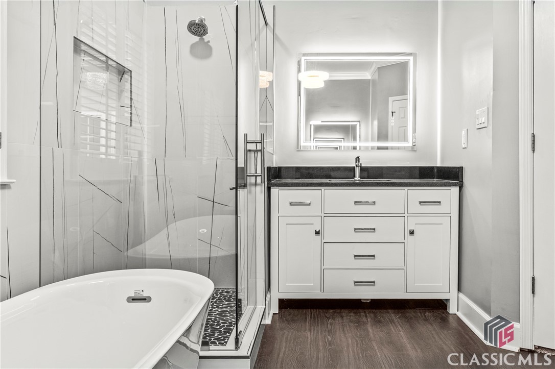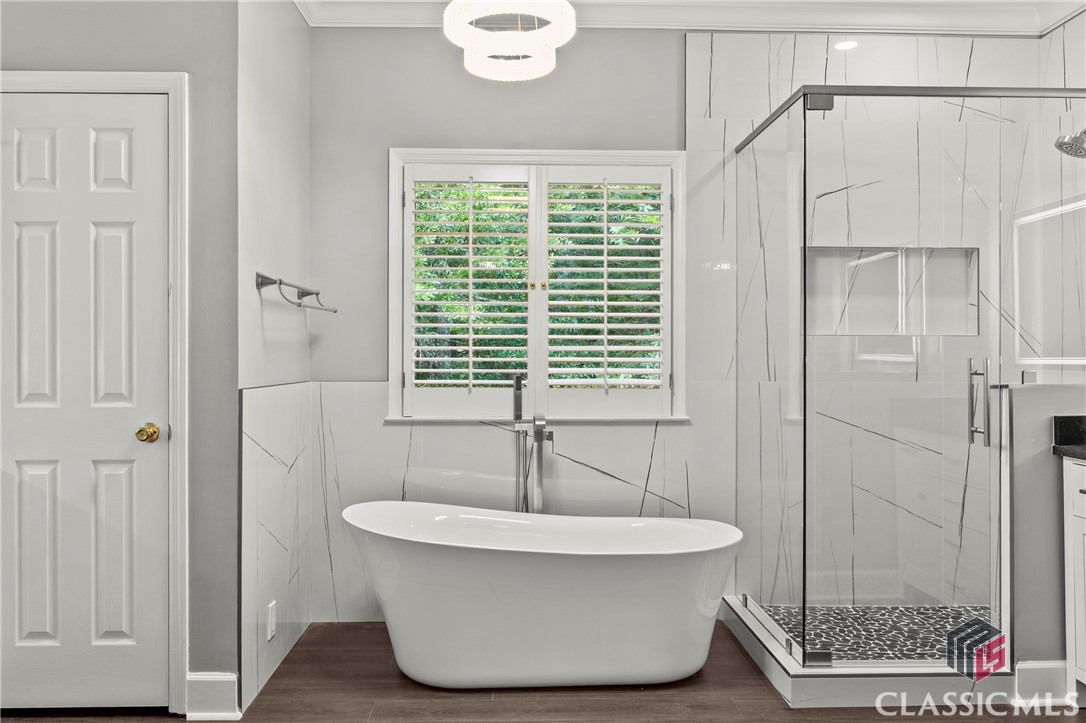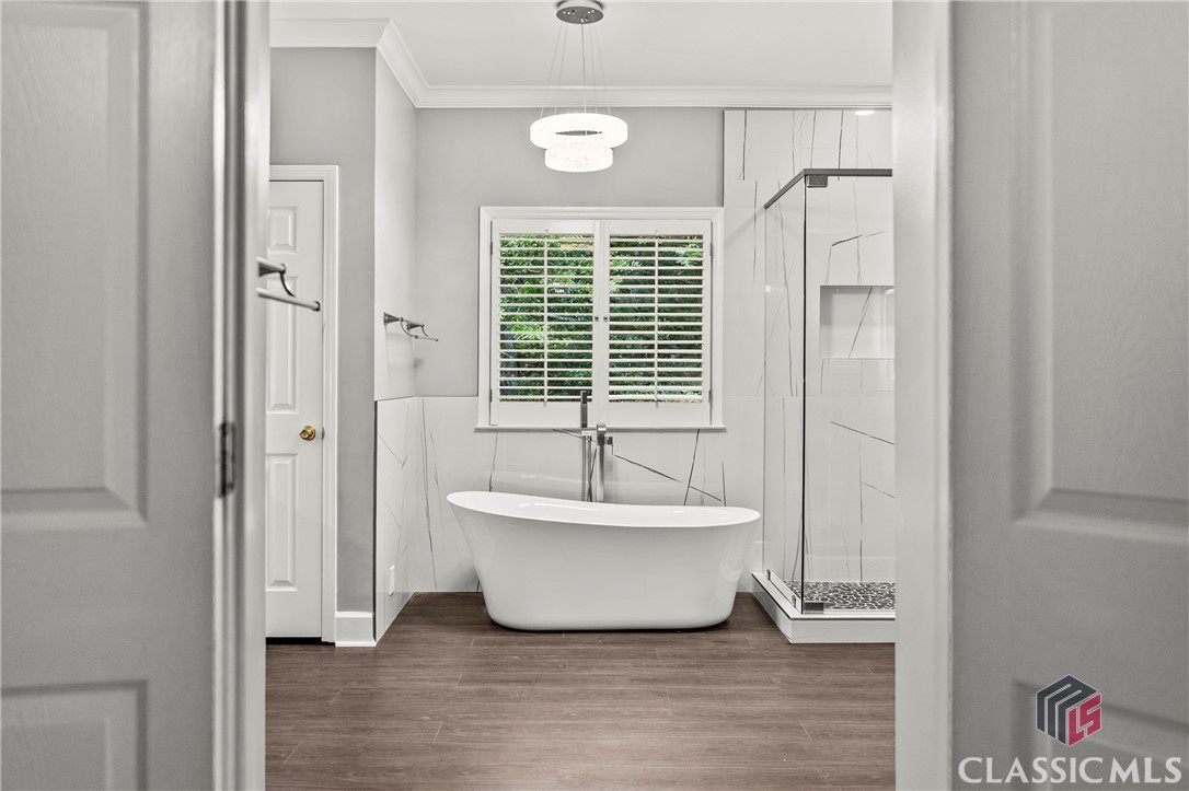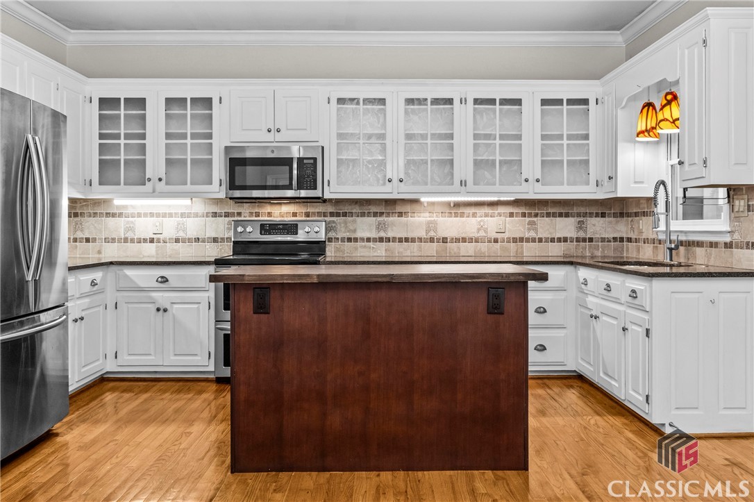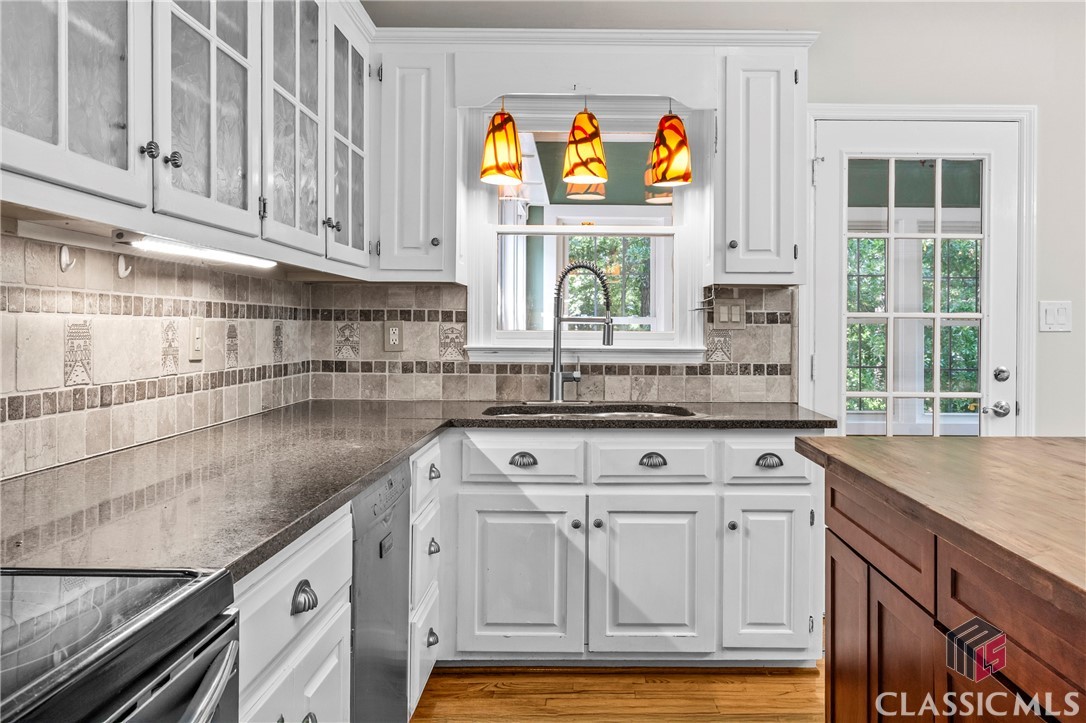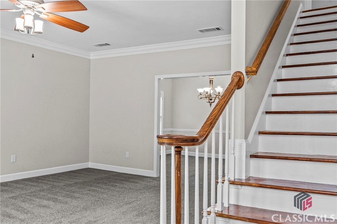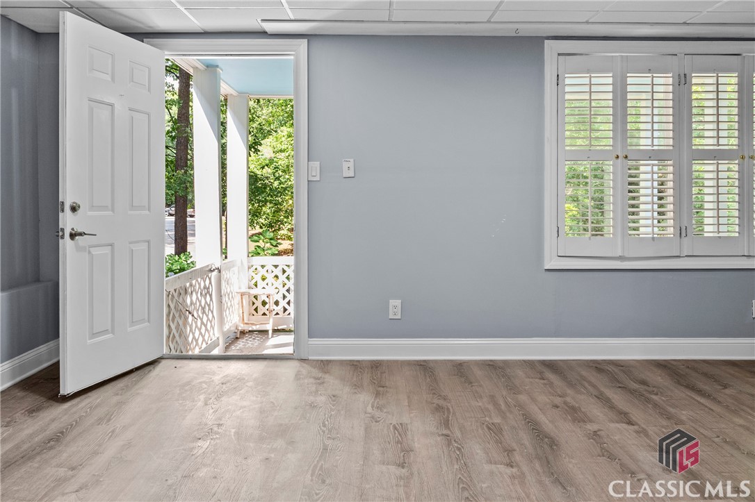 Athens Premier Gated Community, HOA covers water, sewage, building insurance, roof replacement, landscape services, pool maintenance and road maintenance. Flawless from top to bottom, this impeccably maintained residence maximizes livability with complete main level living, bonus secondary level living, and premium basement versatility. High ceilings, plantation shutters, light filled transom windows, and crown molding enhance elegance and character in this traditional home. Its a classically designed home with living room, dining room, kitchen, laundry, sunroom, guest bathroom and master suite on the main level, for the most convenient layout. The truly traditional floor plan has purposeful living and dining rooms both serving their roles of formality and flexibility and flow seamlessly into the kitchen/sunroom located at the back of the home. There are never too many cooks in this well appointed kitchen where abundant cabinetry and countertop space are ready for duty. Being the perfect host comes easy with so many perfectly designed spaces in such generous square footage. The Primary suite is tucked away and is the only bedroom on the main level providing a private retreat with luxurious master bath (updated in 2024). The secondary level features two additional bedrooms, jack and Jill bath, and library with extensive custom shelving. A finished basement is a perfect play place for hobbies and/or in-law suite with its own full bathroom and exterior door to the covered patio. Manicured landscaped with fountain and plush grassy knoll.