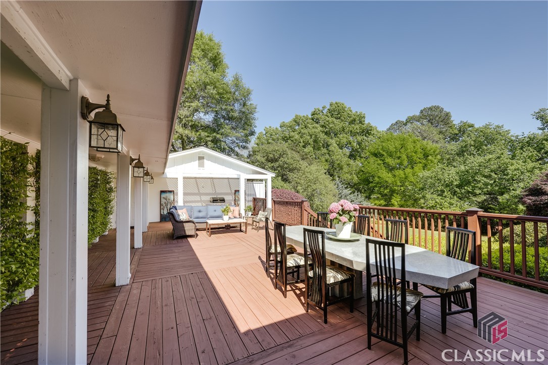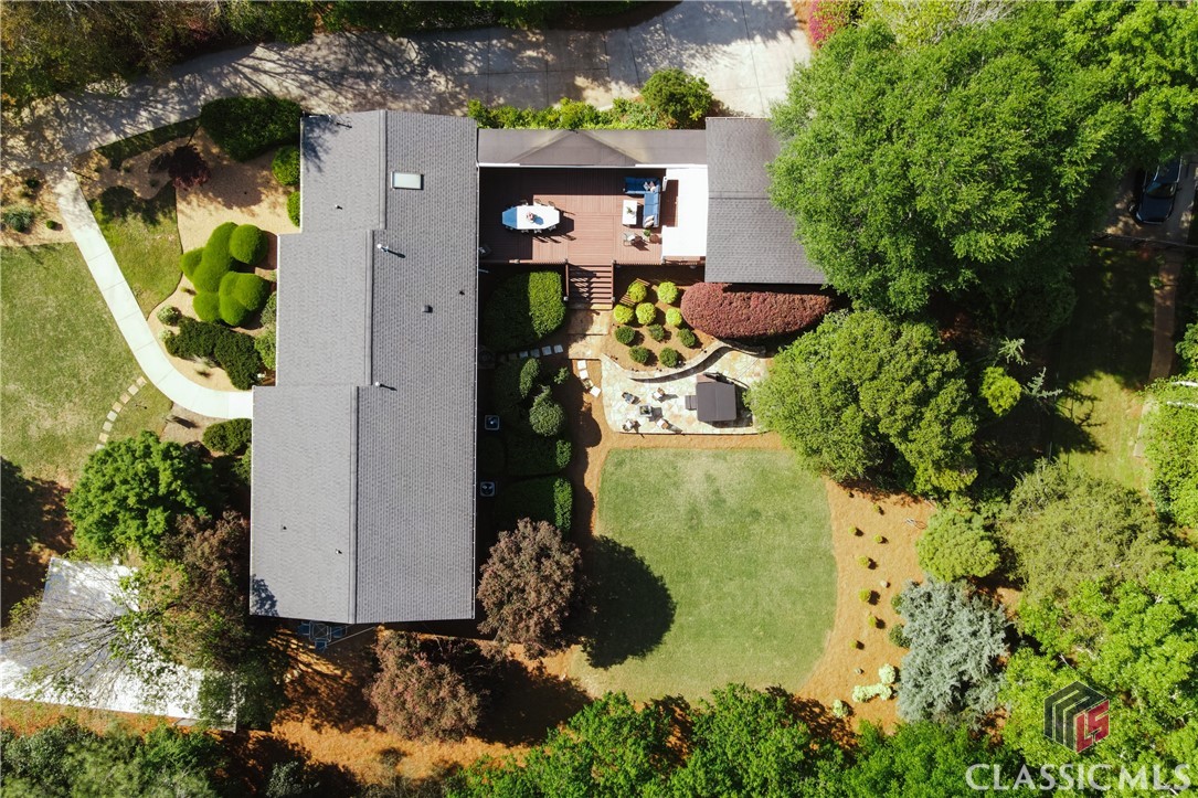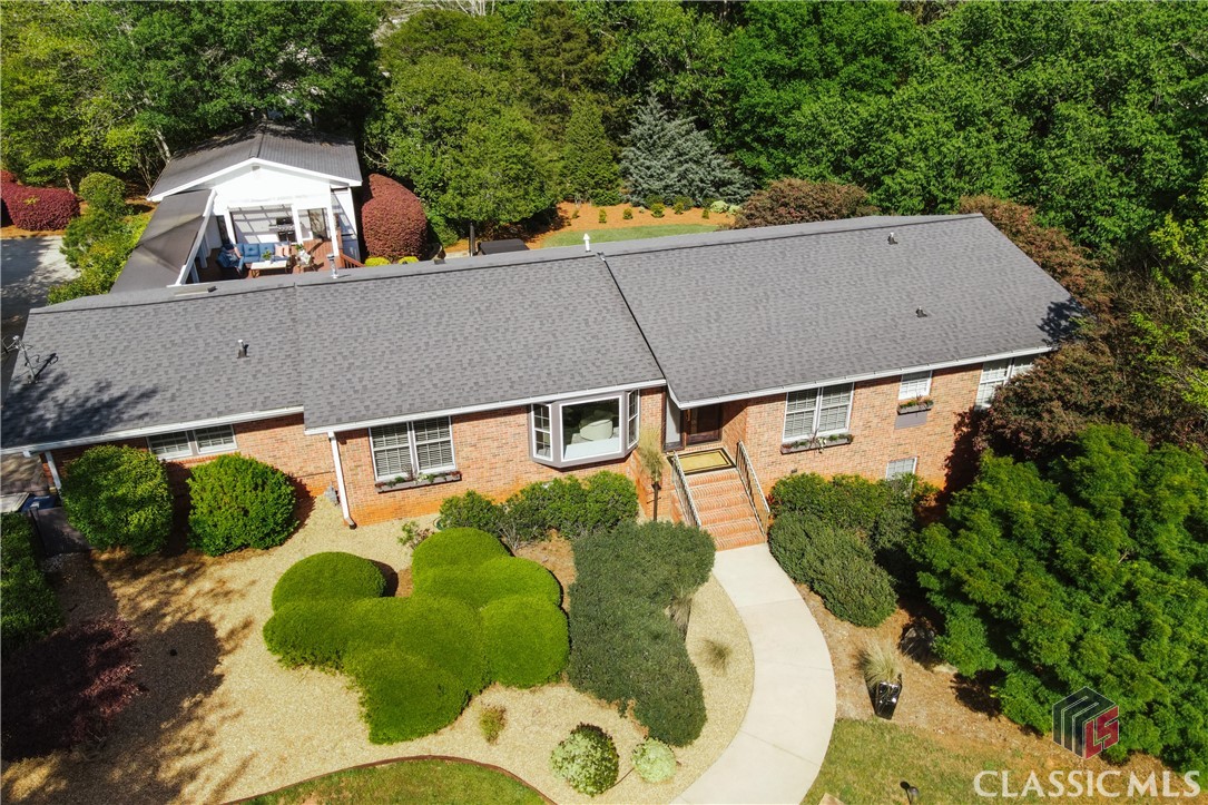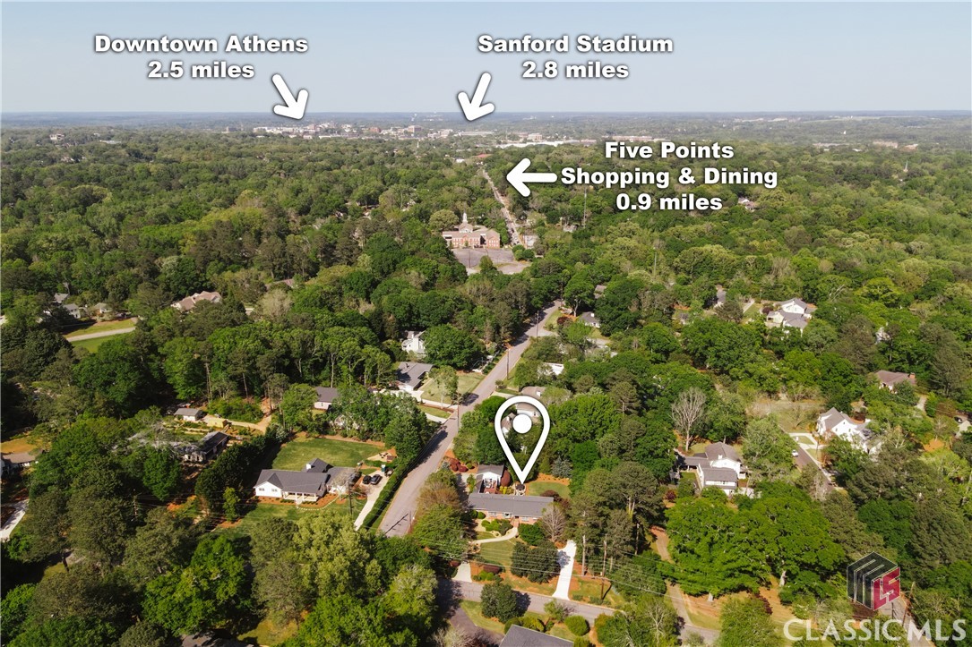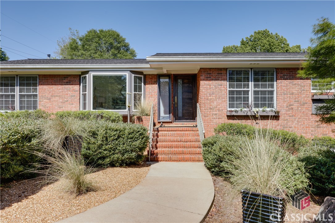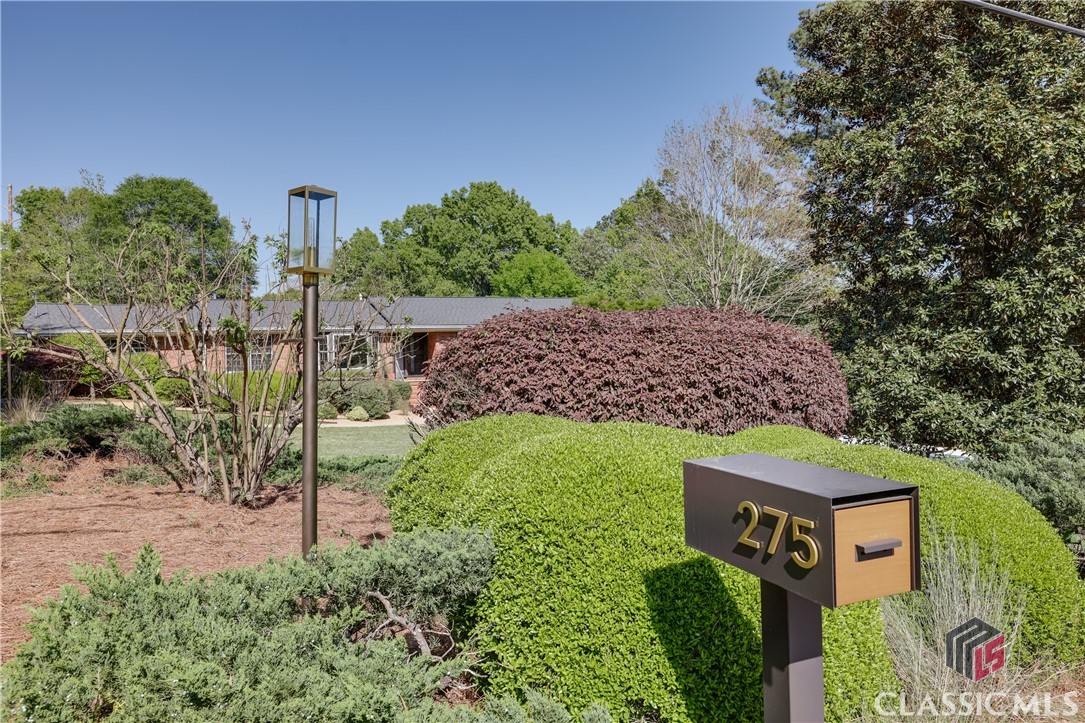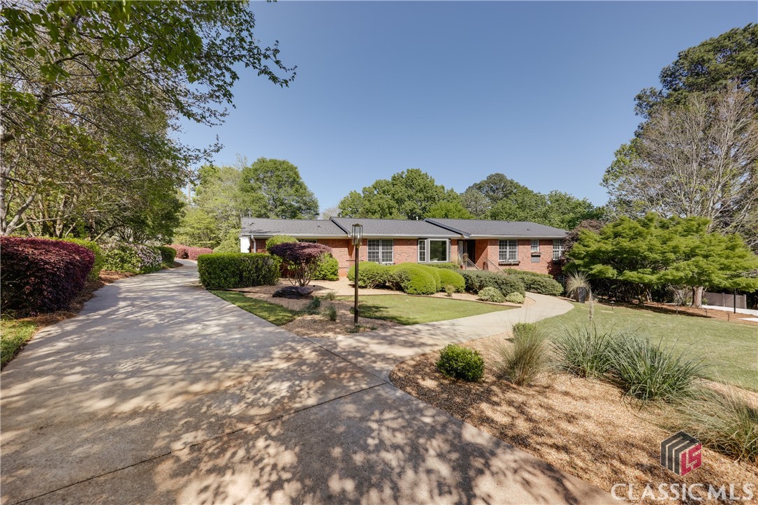 Welcome to 275 Woodward Way in the beautiful and tranquil Bedgood-Glenwood Five Points neighborhood in Athens, Georgia.This highly desirable and well established in-town area is just minutes away from the bustling Five Points businesses, award winning Barrow Elementary School, The University of Georgia and downtown Athens. This impeccable mid-century ranch sits at the corner of Riverview Drive and Woodward Way on just over one acre of lush, professionally landscaped grounds. 3 BR 3 BA on the main level with a separate and private apt at terrace level with 1 BR and 1 BA as well as additional flex rooms and storage spaces. The home has recently undergone extensive renovations, repairs and improvements throughout the spaces creating a lovely and seamless structure. Traditional foyer leads to formal living and cozy dining area. Large bay window floods this area with light. Lovely original oak hardwood flooring runs through much of the home on the main level. Light and bright functional kitchen with new Brazilian quartzite counter tops accent the newly restored solid wood custom cabinetry. New lighting and custom windows recently installed here and across home. Bar area for eating or study as well as a spacious and sunny room for dining, sitting or entertaining. More custom cabinetry and built-ins for storage flank the wall of this room. Additionally, there is a large flex room that can serve as a sitting room with a fireplace, sunroom with skylight, artist studio with a view or even an additional fourth bedroom as there is plenty of closet space, utilitarian laundry room and a full bathroom attached on the main level. Doors leading out to driveway, deck for dining alfresco, detached garage, storage and paths leading to back lawn are also conveniently located in this bonus space. Primary bedroom suite is on the main level with sweeping views of the backyard. Spa-like bathroom is spacious and is appointed with matching quartzite counters and separate sitting area as well as a dedicated room with tub, shower and toilet. Wrap around custom closet is adjacent with window. Two additional sunny bedrooms with updated full bathroom across wide hallway. Downstairs, wide staircase leads to private and secure terrace level updated light and bright apartment with living area, office space, kitchenette, bedroom and full renovated bathroom. Laundry room, pantry and plenty of storage / closet space here as well. Exterior access. Additionally, downstairs but separate from the apt there are two large rooms that could be used for office space, media room, a gym or auxiliary storage spaces. There is also utility space / room for storage rounding out this lower level area. Original driveway leads to two-car garage with hobby room and storage as well as a new lower level parking pad and separate driveway for additional parking and convenience. Mature plantings and irrigation enhance the lot, offering impressive views and a park-like feel to this private, peaceful setting.