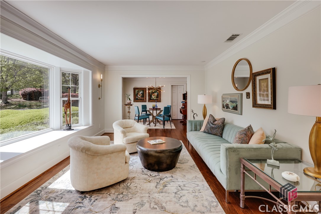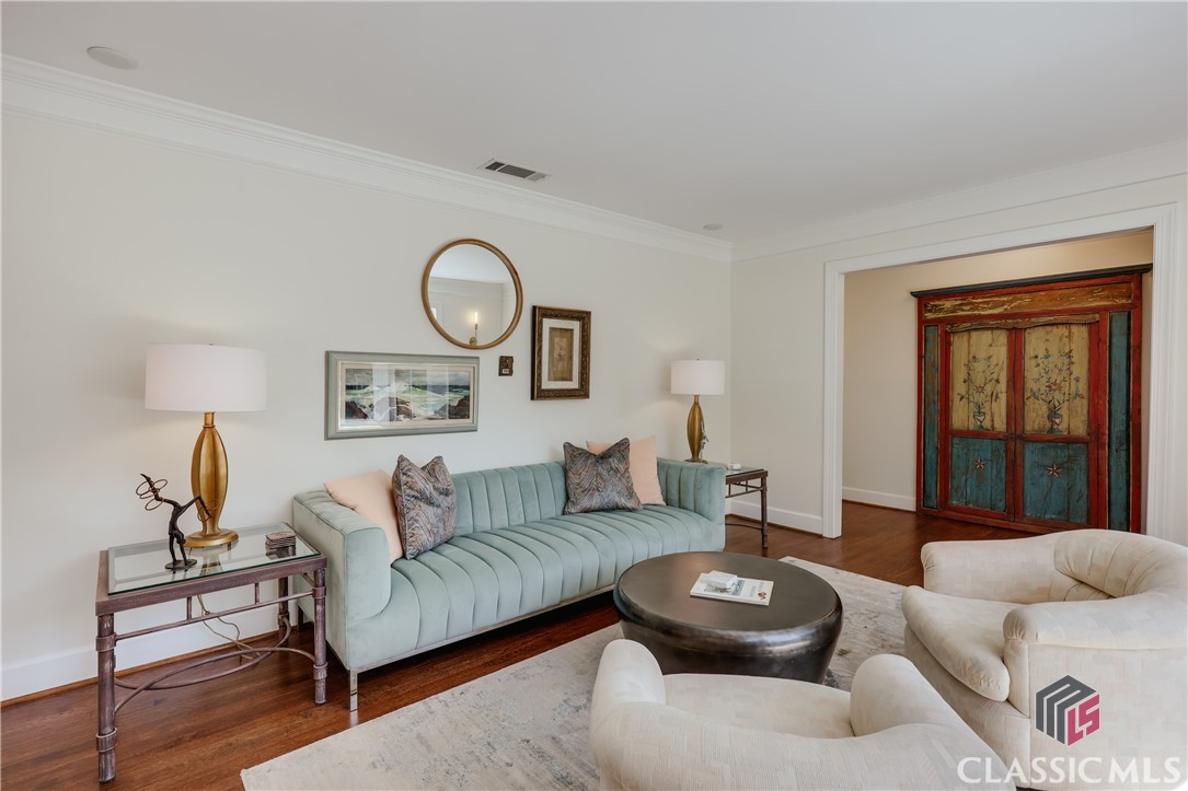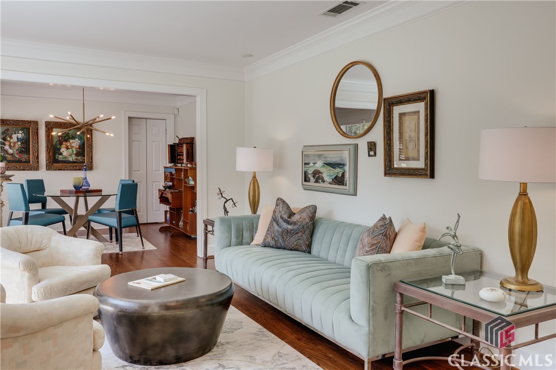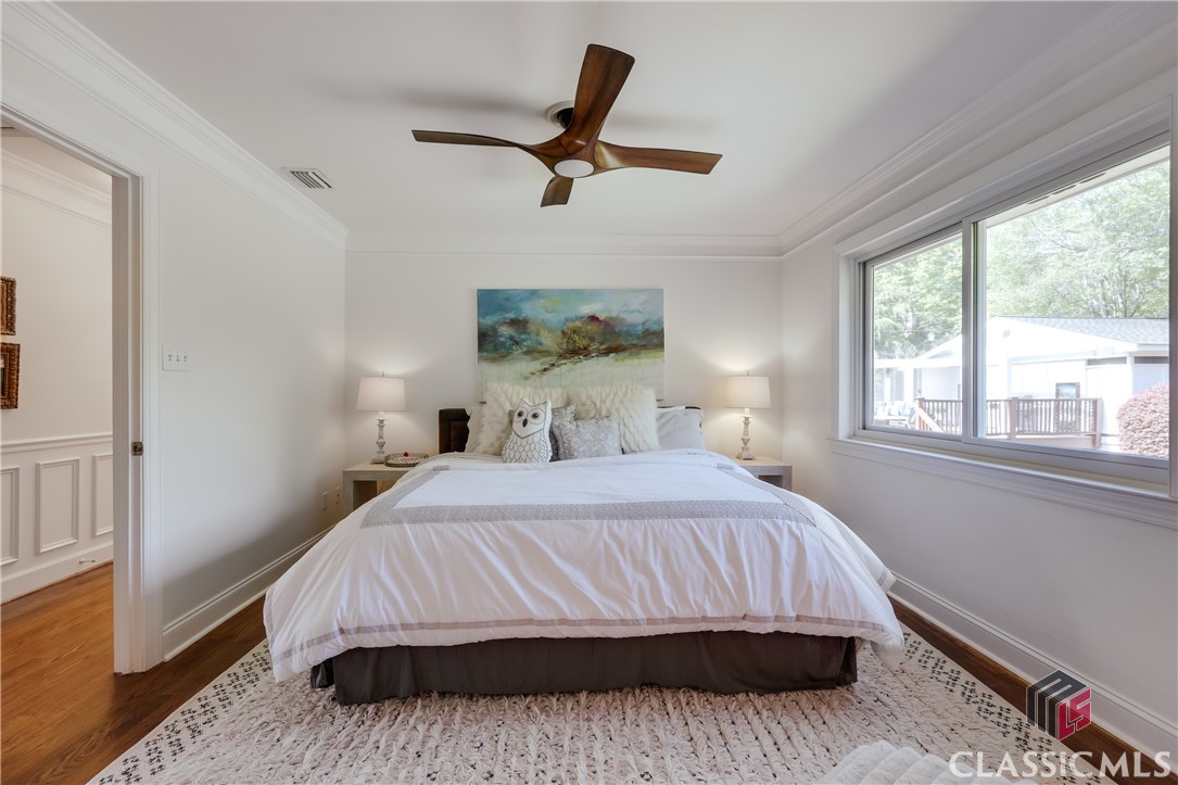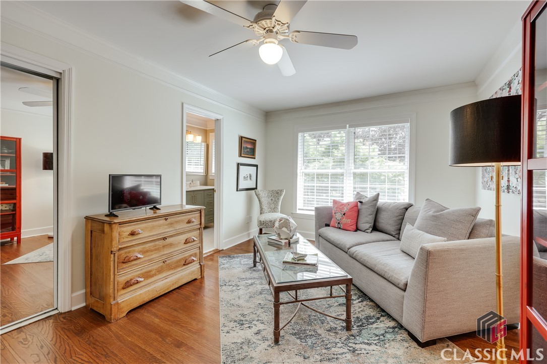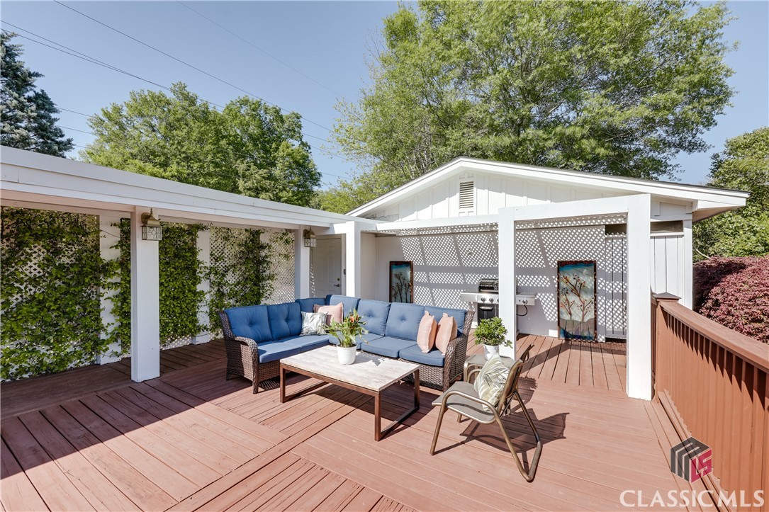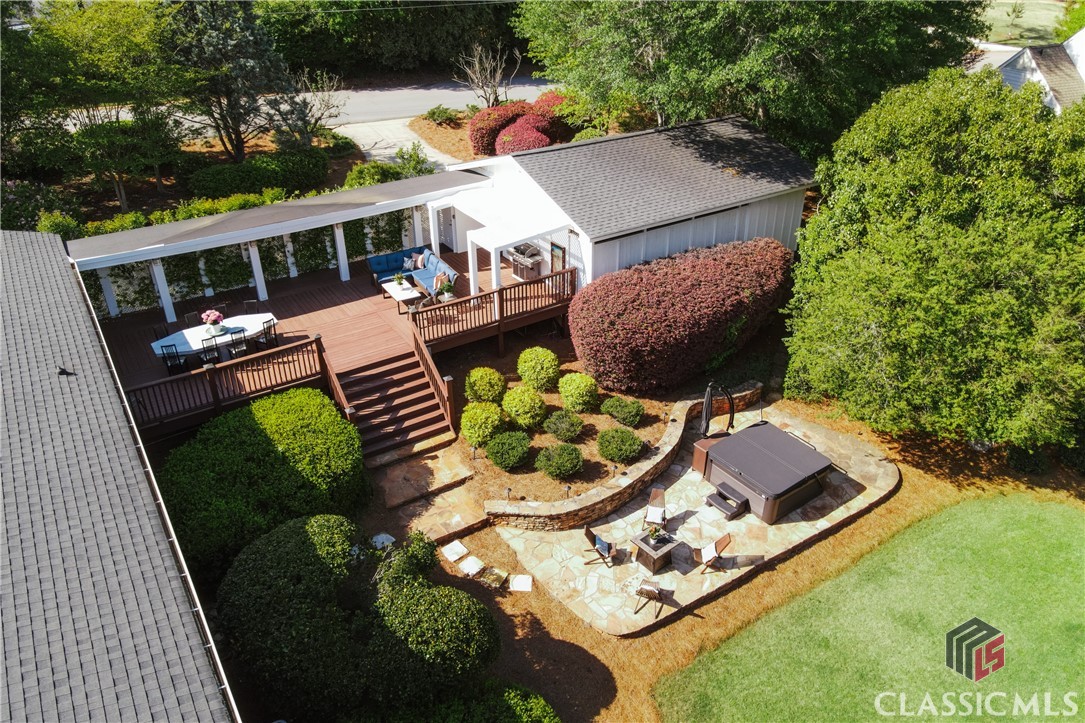 Welcome to 275 Woodward Way in the beautiful and tranquil Bedgood-Glenwood Five Points neighborhood in Athens, Georgia.This highly desirable and well established in-town area is just minutes away from the bustling Five Points businesses, award winning Barrow Elementary School, The University of Georgia and downtown Athens. This impeccable mid-century ranch sits at the corner of Riverview Drive and Woodward Way on just over one acre of lush, professionally landscaped grounds. 3 BR 3 BA on the main level with a separate and private apt at terrace level with 1 BR and 1 BA as well as additional flex rooms and storage spaces. The home has recently undergone extensive renovations, repairs and improvements throughout the spaces creating a lovely and seamless structure. Traditional foyer leads to formal living and cozy dining area. Large bay window floods this area with light. Lovely original oak hardwood flooring runs through much of the home on the main level. Light and bright functional kitchen with new Brazilian quartzite counter tops accent the newly restored solid wood custom cabinetry. New lighting and custom windows recently installed here and across home. Bar area for eating or study as well as a spacious and sunny room for dining, sitting or entertaining. More custom cabinetry and built-ins for storage flank the wall of this room. Additionally, there is a large flex room that can serve as a sitting room with a fireplace, sunroom with skylight, artist studio with a view or even an additional fourth bedroom as there is plenty of closet space, utilitarian laundry room and a full bathroom attached on the main level. Doors leading out to driveway, deck for dining alfresco, detached garage, storage and paths leading to back lawn are also conveniently located in this bonus space. Primary bedroom suite is on the main level with sweeping views of the backyard. Spa-like bathroom is spacious and is appointed with matching quartzite counters and separate sitting area as well as a dedicated room with tub, shower and toilet. Wrap around custom closet is adjacent with window. Two additional sunny bedrooms with updated full bathroom across wide hallway. Downstairs, wide staircase leads to private and secure terrace level updated light and bright apartment with living area, office space, kitchenette, bedroom and full renovated bathroom. Laundry room, pantry and plenty of storage / closet space here as well. Exterior access. Additionally, downstairs but separate from the apt there are two large rooms that could be used for office space, media room, a gym or auxiliary storage spaces. There is also utility space / room for storage rounding out this lower level area. Original driveway leads to two-car garage with hobby room and storage as well as a new lower level parking pad and separate driveway for additional parking and convenience. Mature plantings and irrigation enhance the lot, offering impressive views and a park-like feel to this private, peaceful setting.