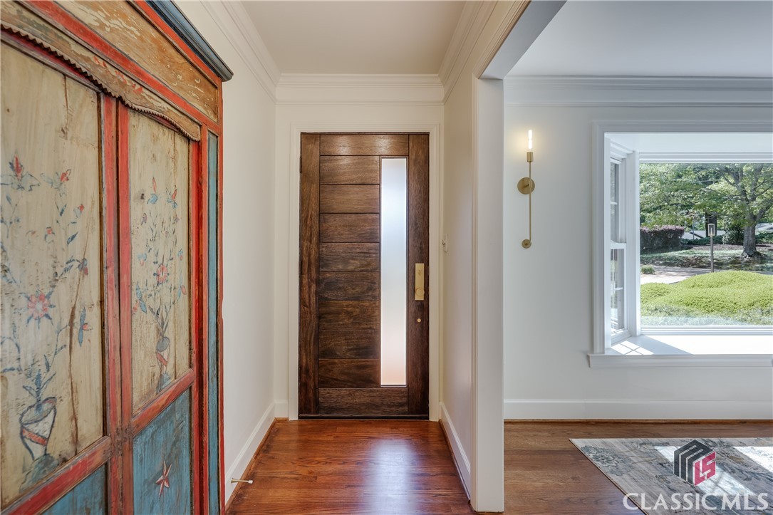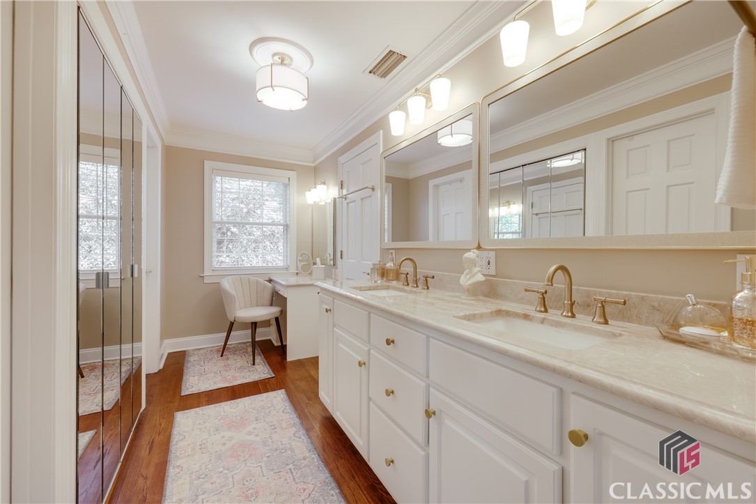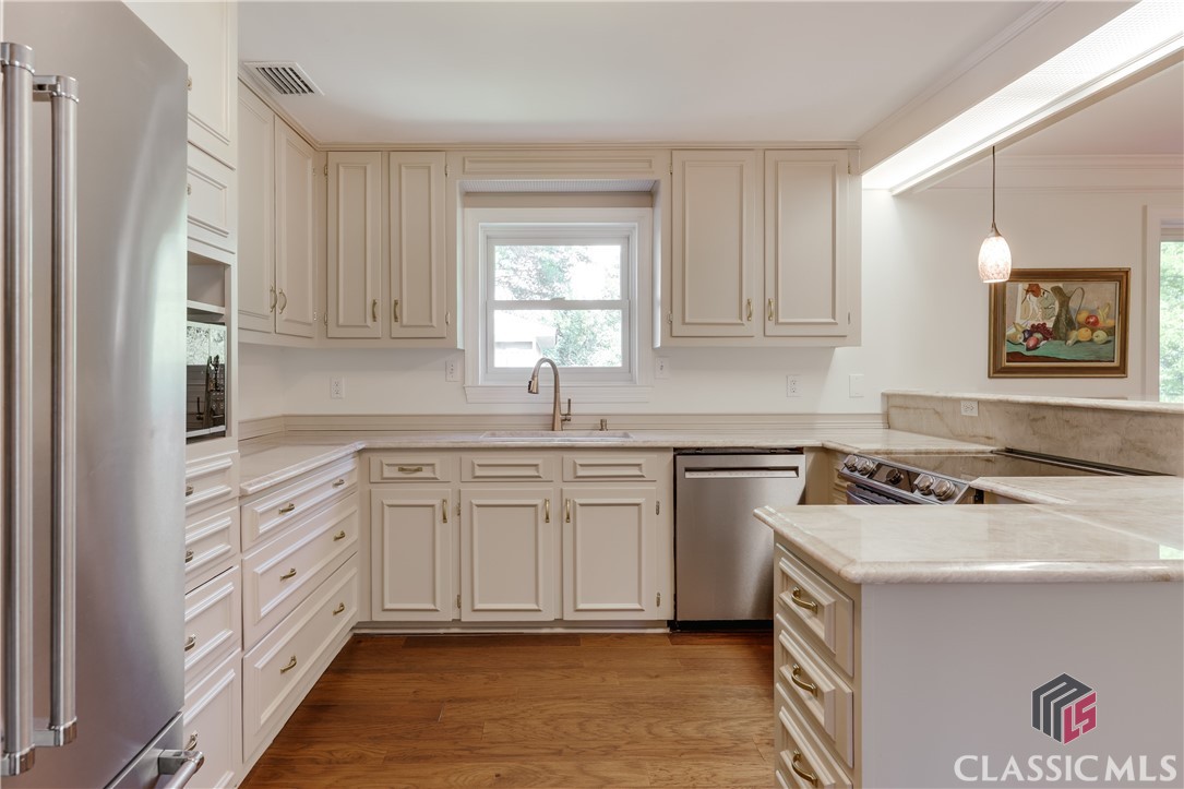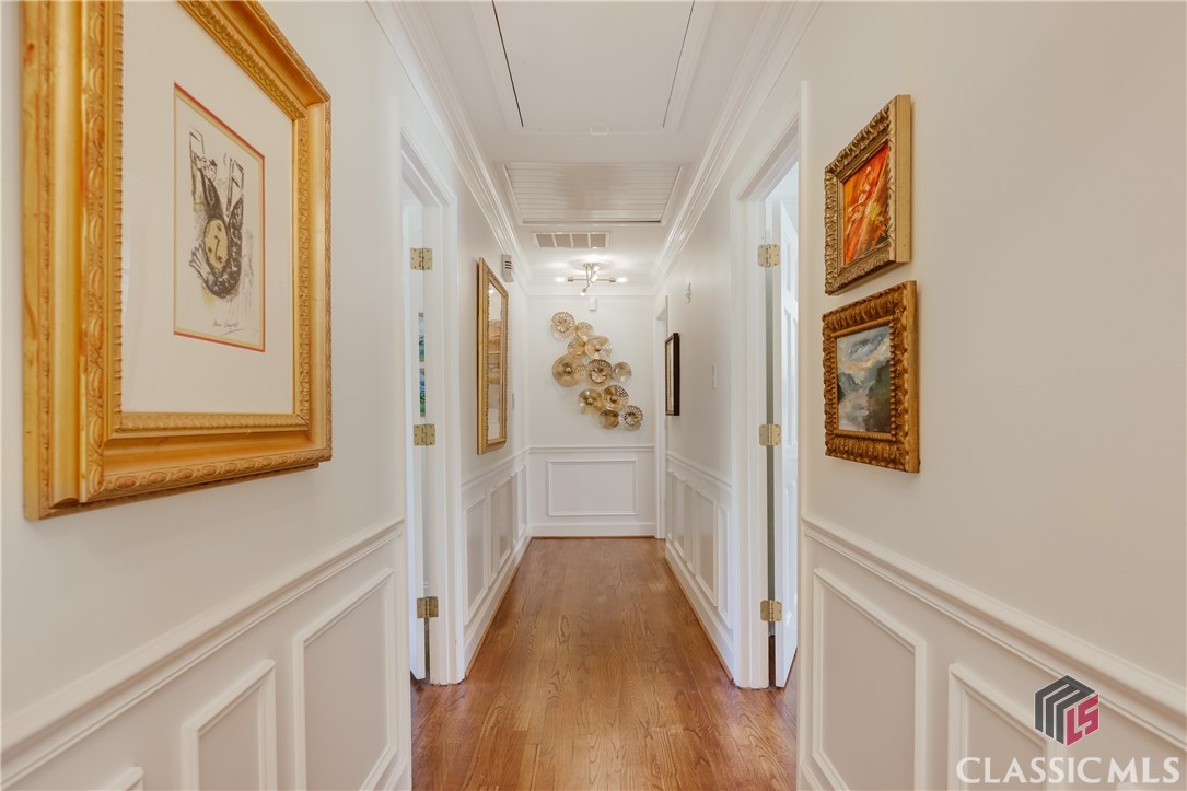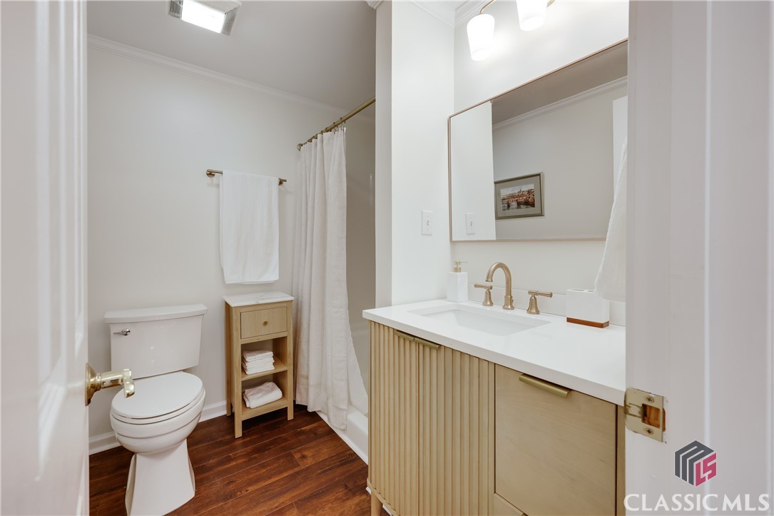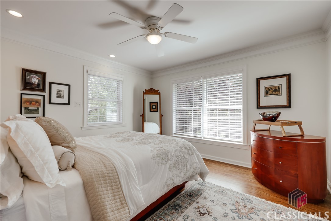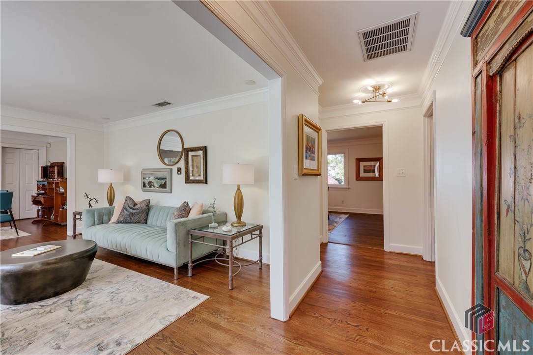 Welcome to 275 Woodward Way in the beautiful and tranquil Bedgood-Glenwood Five Points neighborhood in Athens, Georgia.This highly desirable and well established in-town area is just minutes away from the bustling Five Points businesses, award winning Barrow Elementary School, The University of Georgia and downtown Athens. This impeccable mid-century ranch sits at the corner of Riverview Drive and Woodward Way on just over one acre of lush, professionally landscaped grounds. 3 BR 3 BA on the main level with a separate and private apt at terrace level with 1 BR and 1 BA as well as additional flex rooms and storage spaces. The home has recently undergone extensive renovations, repairs and improvements throughout the spaces creating a lovely and seamless structure. Traditional foyer leads to formal living and cozy dining area. Large bay window floods this area with light. Lovely original oak hardwood flooring runs through much of the home on the main level. Light and bright functional kitchen with new Brazilian quartzite counter tops accent the newly restored solid wood custom cabinetry. New lighting and custom windows recently installed here and across home. Bar area for eating or study as well as a spacious and sunny room for dining, sitting or entertaining. More custom cabinetry and built-ins for storage flank the wall of this room. Additionally, there is a large flex room that can serve as a sitting room with a fireplace, sunroom with skylight, artist studio with a view or even an additional fourth bedroom as there is plenty of closet space, utilitarian laundry room and a full bathroom attached on the main level. Doors leading out to driveway, deck for dining alfresco, detached garage, storage and paths leading to back lawn are also conveniently located in this bonus space. Primary bedroom suite is on the main level with sweeping views of the backyard. Spa-like bathroom is spacious and is appointed with matching quartzite counters and separate sitting area as well as a dedicated room with tub, shower and toilet. Wrap around custom closet is adjacent with window. Two additional sunny bedrooms with updated full bathroom across wide hallway. Downstairs, wide staircase leads to private and secure terrace level updated light and bright apartment with living area, office space, kitchenette, bedroom and full renovated bathroom. Laundry room, pantry and plenty of storage / closet space here as well. Exterior access. Additionally, downstairs but separate from the apt there are two large rooms that could be used for office space, media room, a gym or auxiliary storage spaces. There is also utility space / room for storage rounding out this lower level area. Original driveway leads to two-car garage with hobby room and storage as well as a new lower level parking pad and separate driveway for additional parking and convenience. Mature plantings and irrigation enhance the lot, offering impressive views and a park-like feel to this private, peaceful setting.