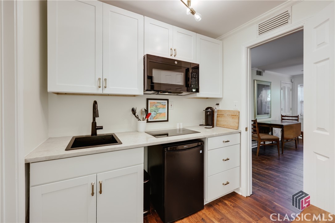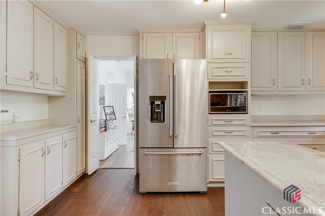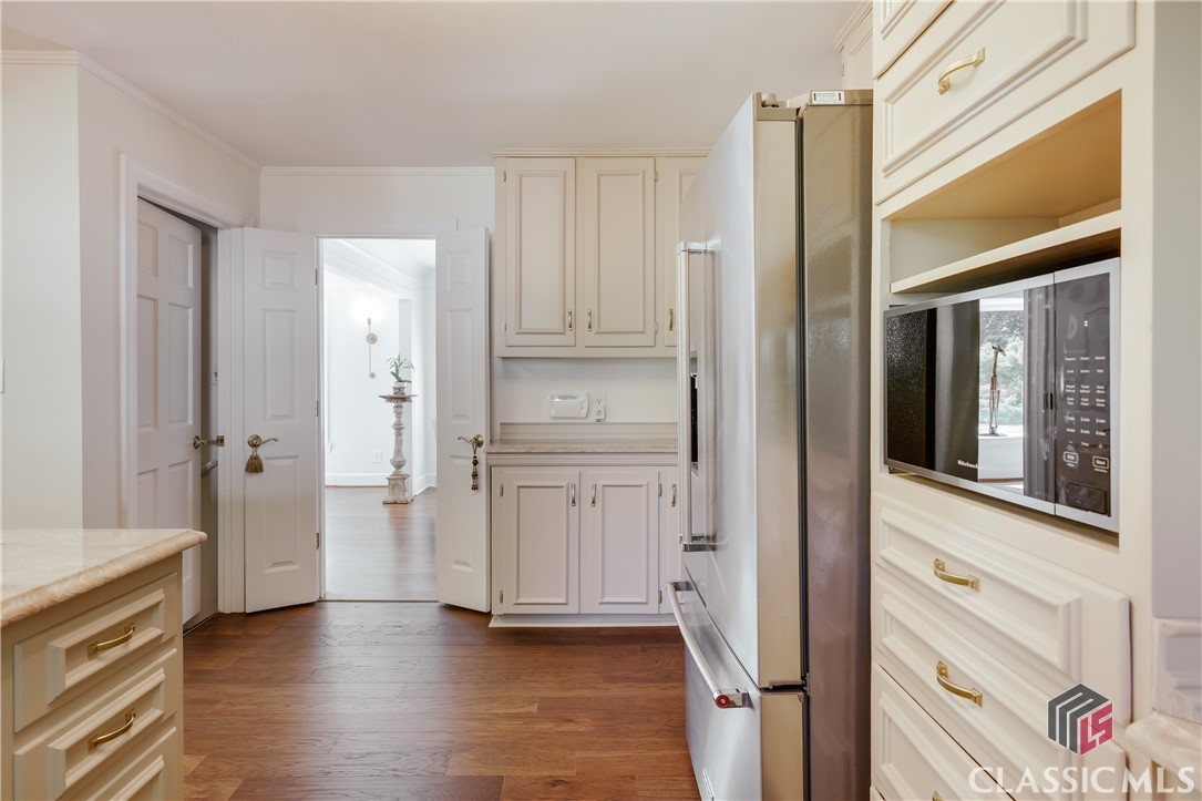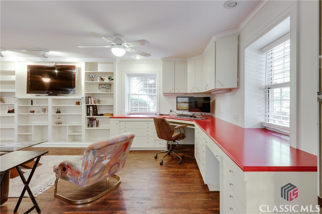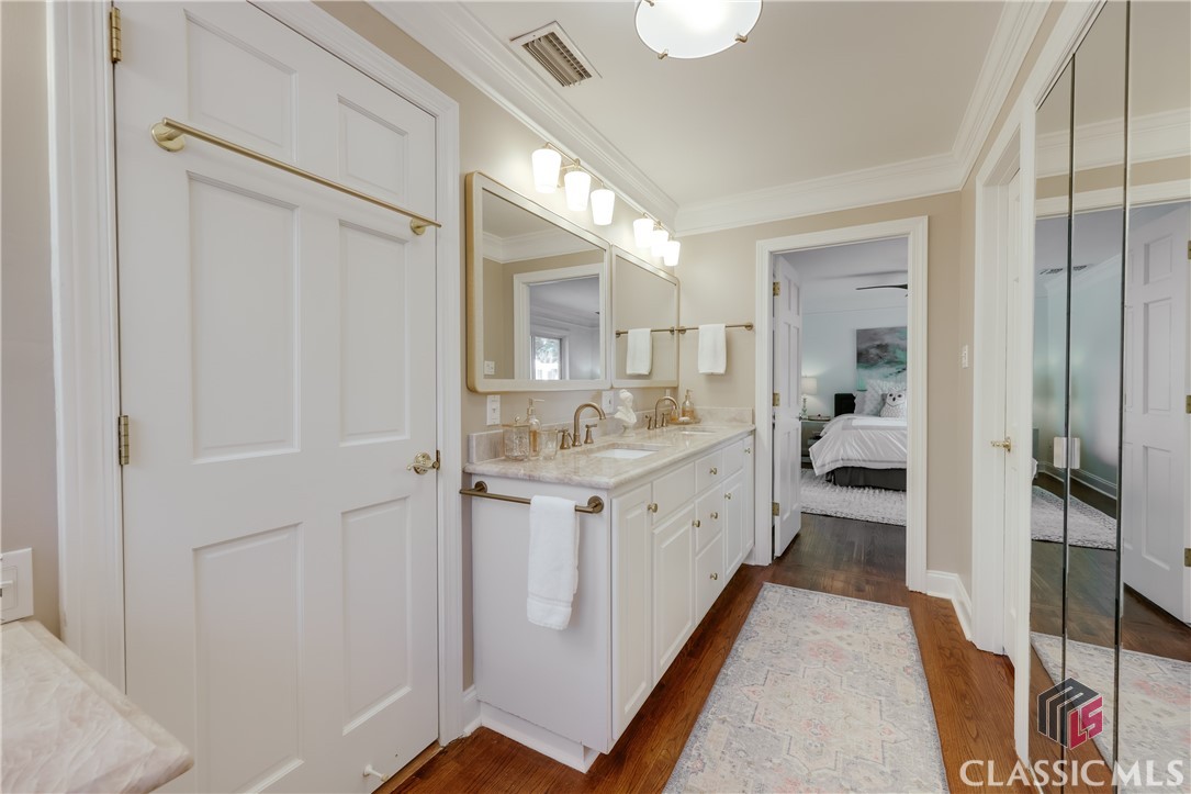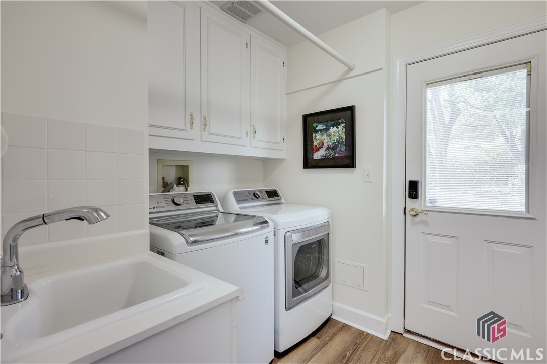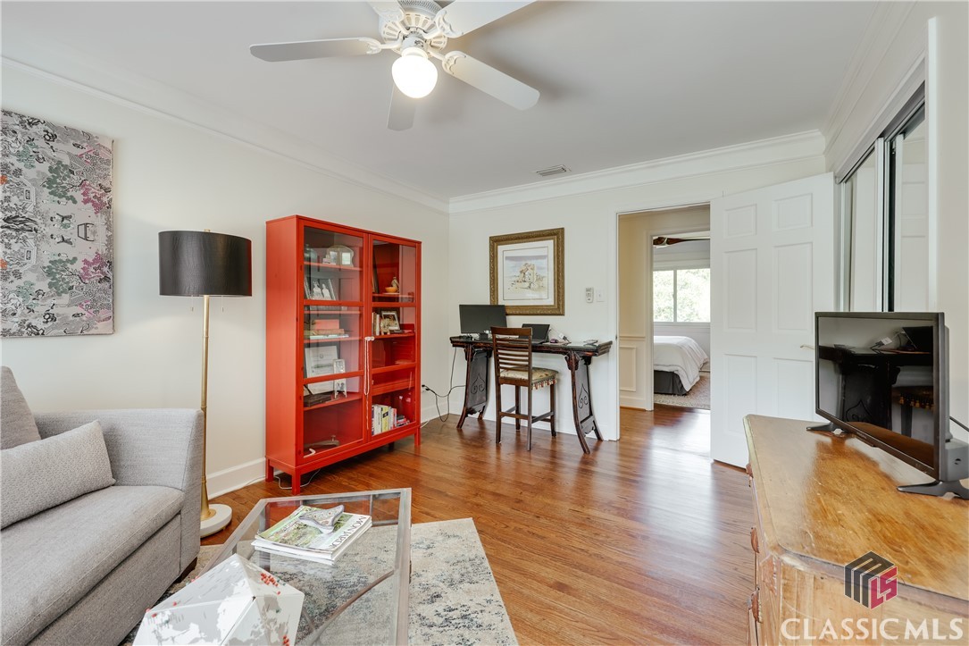 Welcome to 275 Woodward Way in the beautiful and tranquil Bedgood-Glenwood Five Points neighborhood in Athens, Georgia.This highly desirable and well established in-town area is just minutes away from the bustling Five Points businesses, award winning Barrow Elementary School, The University of Georgia and downtown Athens. This impeccable mid-century ranch sits at the corner of Riverview Drive and Woodward Way on just over one acre of lush, professionally landscaped grounds. 3 BR 3 BA on the main level with a separate and private apt at terrace level with 1 BR and 1 BA as well as additional flex rooms and storage spaces. The home has recently undergone extensive renovations, repairs and improvements throughout the spaces creating a lovely and seamless structure. Traditional foyer leads to formal living and cozy dining area. Large bay window floods this area with light. Lovely original oak hardwood flooring runs through much of the home on the main level. Light and bright functional kitchen with new Brazilian quartzite counter tops accent the newly restored solid wood custom cabinetry. New lighting and custom windows recently installed here and across home. Bar area for eating or study as well as a spacious and sunny room for dining, sitting or entertaining. More custom cabinetry and built-ins for storage flank the wall of this room. Additionally, there is a large flex room that can serve as a sitting room with a fireplace, sunroom with skylight, artist studio with a view or even an additional fourth bedroom as there is plenty of closet space, utilitarian laundry room and a full bathroom attached on the main level. Doors leading out to driveway, deck for dining alfresco, detached garage, storage and paths leading to back lawn are also conveniently located in this bonus space. Primary bedroom suite is on the main level with sweeping views of the backyard. Spa-like bathroom is spacious and is appointed with matching quartzite counters and separate sitting area as well as a dedicated room with tub, shower and toilet. Wrap around custom closet is adjacent with window. Two additional sunny bedrooms with updated full bathroom across wide hallway. Downstairs, wide staircase leads to private and secure terrace level updated light and bright apartment with living area, office space, kitchenette, bedroom and full renovated bathroom. Laundry room, pantry and plenty of storage / closet space here as well. Exterior access. Additionally, downstairs but separate from the apt there are two large rooms that could be used for office space, media room, a gym or auxiliary storage spaces. There is also utility space / room for storage rounding out this lower level area. Original driveway leads to two-car garage with hobby room and storage as well as a new lower level parking pad and separate driveway for additional parking and convenience. Mature plantings and irrigation enhance the lot, offering impressive views and a park-like feel to this private, peaceful setting.