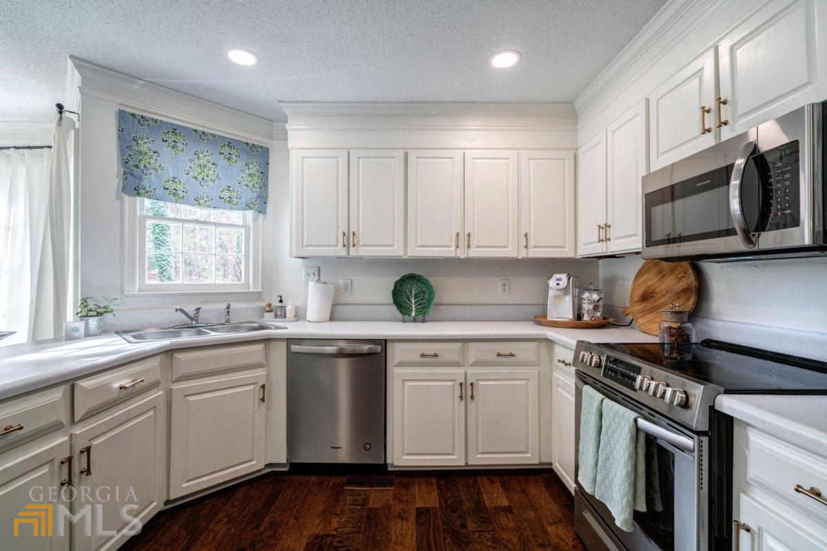 Beautifully appointed one-level home in desirable Woodhaven! The current owners have completed many upgrades including engineered, wide plank hardwood flooring, new interior and exterior paint, new stainless steel appliances, lighting and bathroom fixtures. The entry foyer leads to a formal dining room with wainscoting, crystal chandelier, and deep crown molding. Bright and spacious living room features a wood burning fireplace, recessed lighting, wainscoting, trey ceiling, and french doors leading to the rear deck. Eat-in kitchen has many windows allowing the afternoon sun to flood the space with natural lighting. Spacious kitchen has painted wood cabinetry, ample counter space, and stainless steel appliances. Owner's Suite is located on the main level and features a trey ceiling and spacious ensuite bathroom with double vanity, walk-in closet, and soaking tub. Two additional bedrooms share the tiled hall bathroom with updated lighting fixtures and faucets. The backyard is completely fenced and a slate gravel seating area with fire pit was added for an additional outdoor living space. Wooden rear deck is perfect for entertaining or enjoying your morning coffee or an evening's glass of wine. Additional updates include 2.5 year old roof and HVAC system, new garage door and new garage door opener. Enjoy the optional HOA amenities which include a community pool and tennis courts. Located super close to West Athens dining, shopping, and grocery stores.