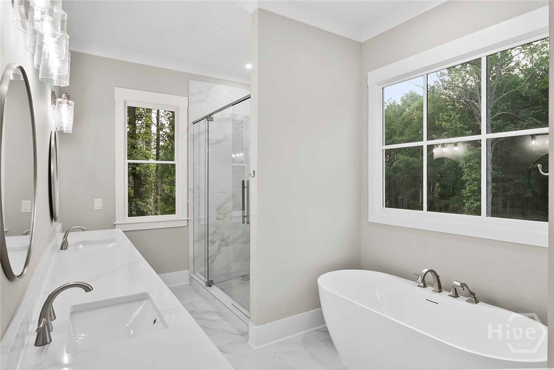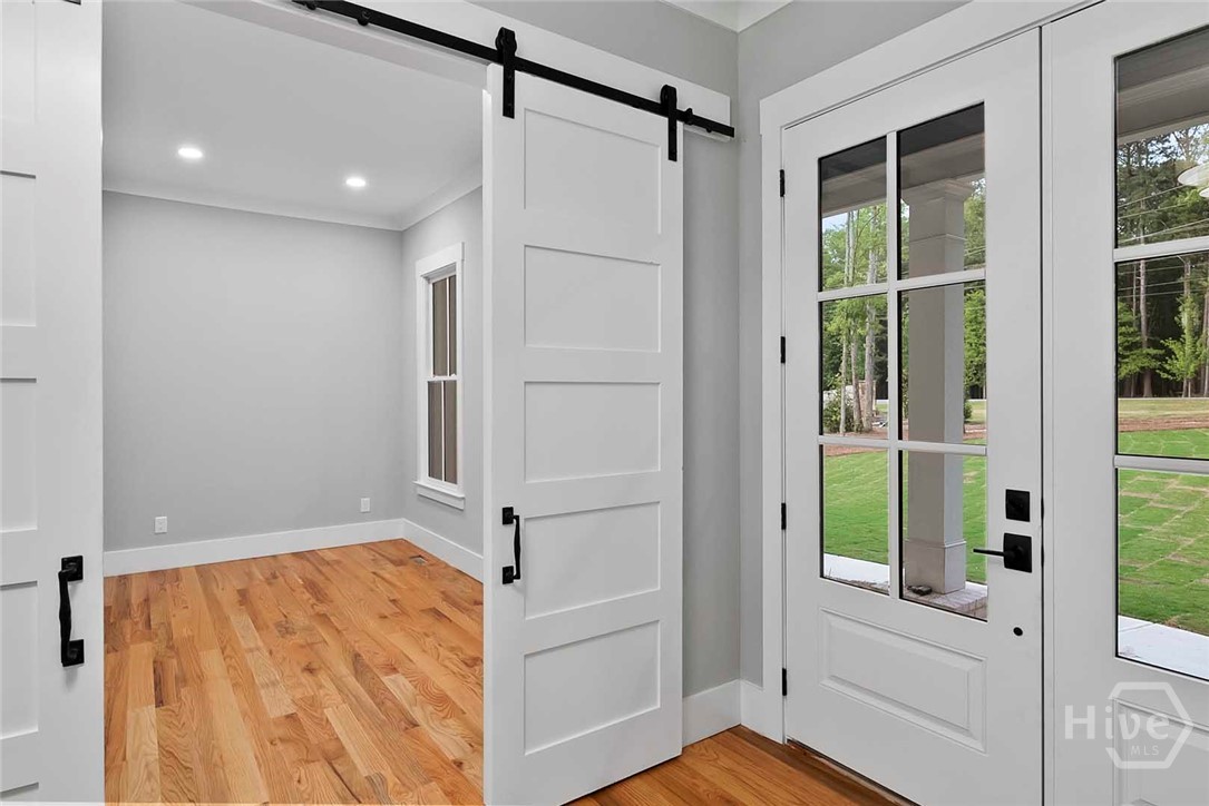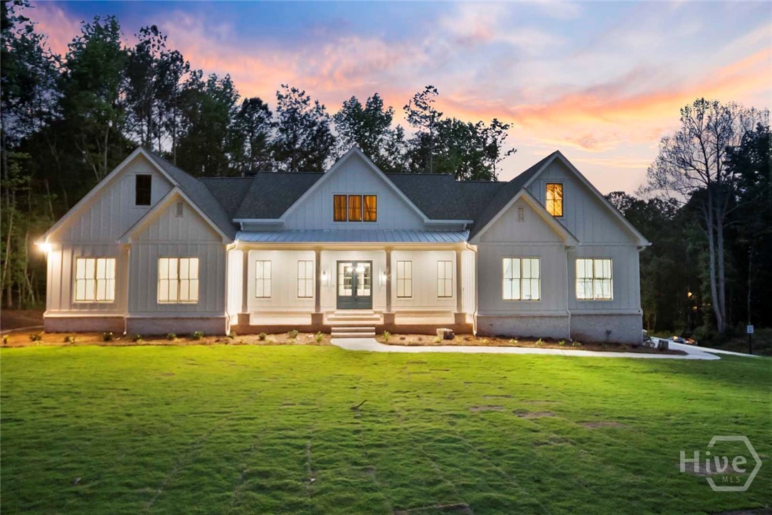 Stunning 2025 Modern Farmhouse build just 2 miles from the city limits of Monroe, Georgia. This beautifully crafted ranch home blends contemporary finishes with a farmhouse feel in a peaceful, rural setting. Set on a spacious 2 acre lot and framed by mature trees, this light filled home makes an unforgettable first impression with its crisp white exterior, gabled roof lines, and inviting porches. Generous windows flood the home with natural light, highlighting clean lines, quality craftsmanship, and a neutral palette ready for your personal touch. The open concept is designed for both everyday living and effortless entertaining. There's a seamless flow between living spaces inside and out creating a perfect atmosphere with two fireplaces, one in the great room and a second on the exterior rear deck. A grand double door entry, formal foyer, designated office and great room with gourmet kitchen create the lifestyle for present day living. The favored split bedroom floor plan positions the master suite on one side of the home with large laundry room close by and four bedrooms on the other side of the home, three of which have en-suites. A bonus room above the garage can serve as a 6th bedroom/ flex space and has a full bath. This stunning ranch checks every box by including an unfinished daylight basement with endless possibilities. Come home to harmony that is 36 Alcovy Springs Drive.