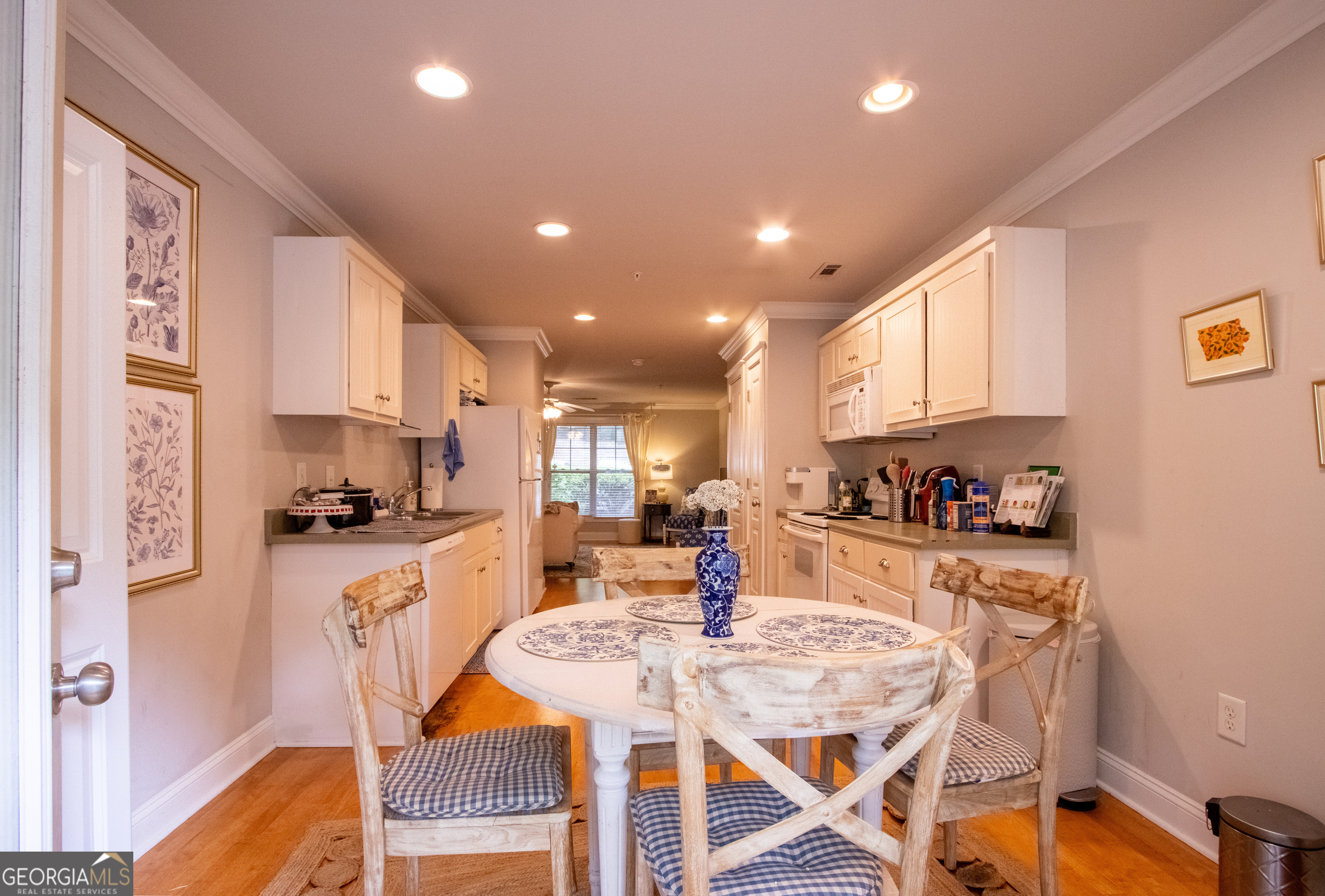 Ready for Summer/ Fall 2025 occupancy. Highly recognized as Athens favorite condo community, the Woodlands of Athens is most picturesque with a varity of cottage builds, heavy landscape, and resort style amenity package. This is a 3/3 ground level unit offering the largest open floor plan. The common areas sprawl from the living room, galley kitchen, and dining area to the exterior patio, for utmost entertaining and fellowship. Equal bedroom and bath count for convenience and privacy. New HVAC
