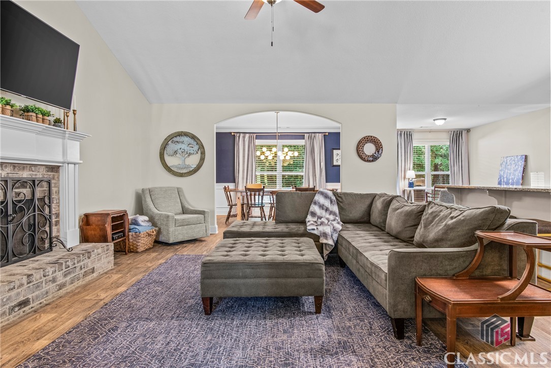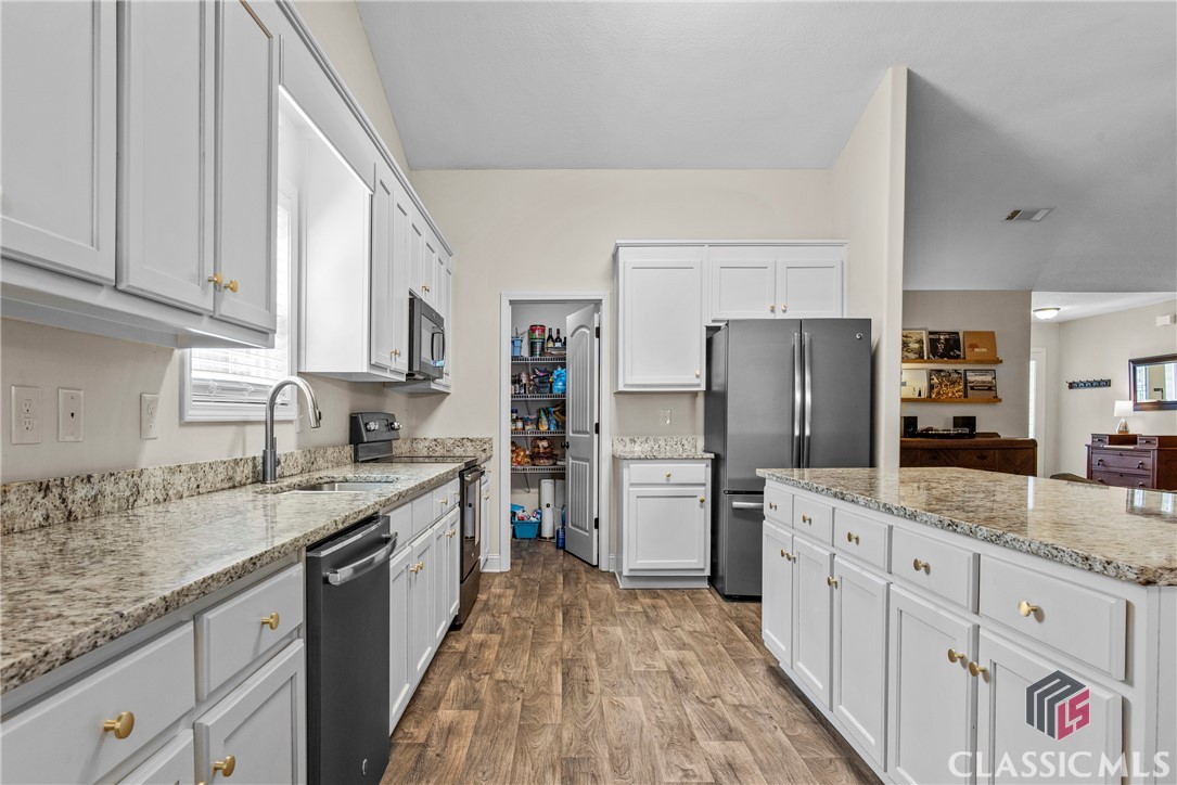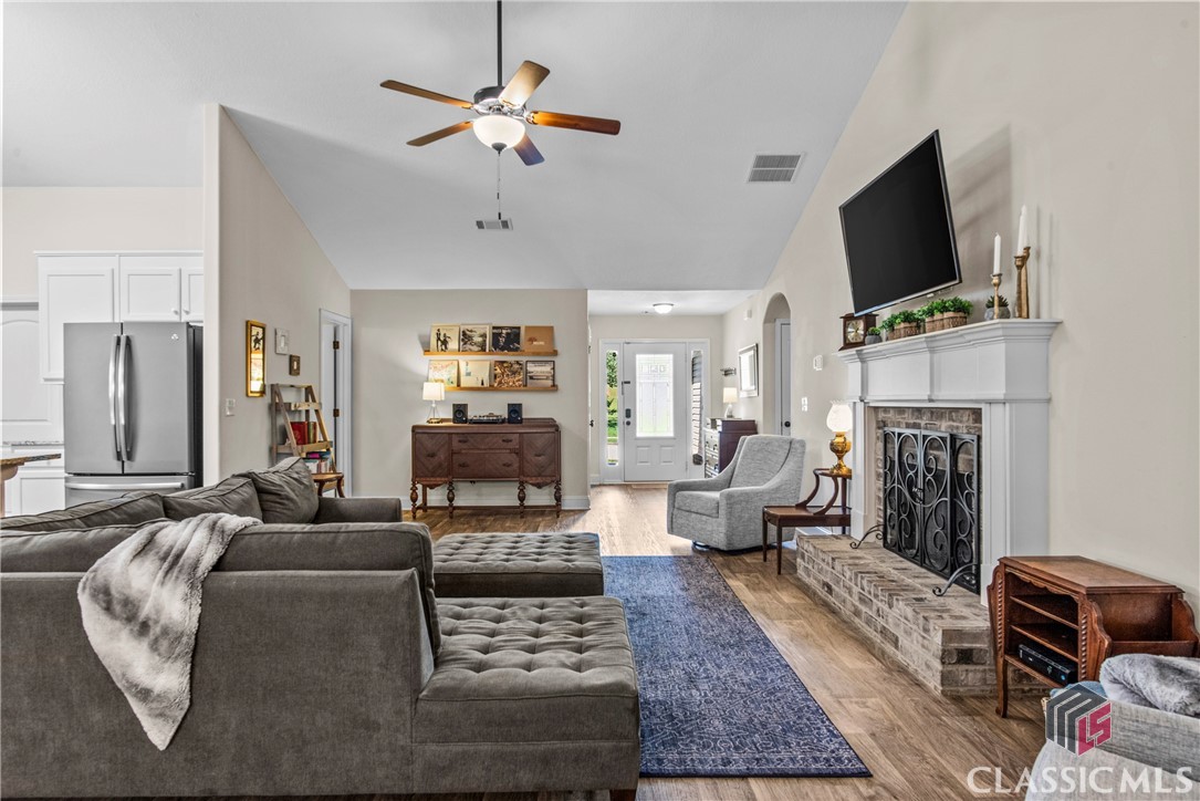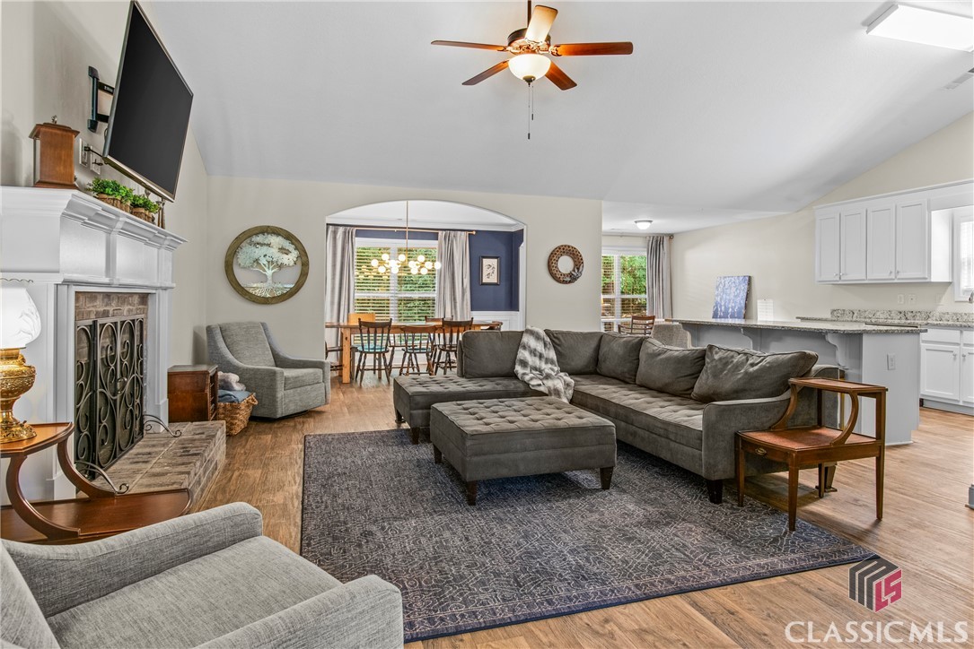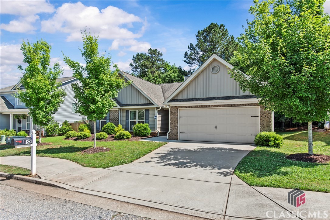 At 8 years young, this modern ranch delivers on space, functionality, and finishes. This one level classic boasts a tasteful craftsman exterior with an open concept interior. The common areas are all inclusive combining a foyer, showcase kitchen, oversized family room, formal dining room, and cozy flex space. Vaulted ceilings and fireplace compliment and complete this comfortable gathering space. Centerstage will be claimed by the timeless white kitchen and its clean lines featuring shaker style cabinets, granite countertops, stainless steel appliances and walk in pantry. The kitchen design maximizes countertop space and incorporates a large island with seating. Four bedrooms, two and half baths, and laundry room conclude the interior. A square footage advantage provides a true master suite for those who love a private retreat.