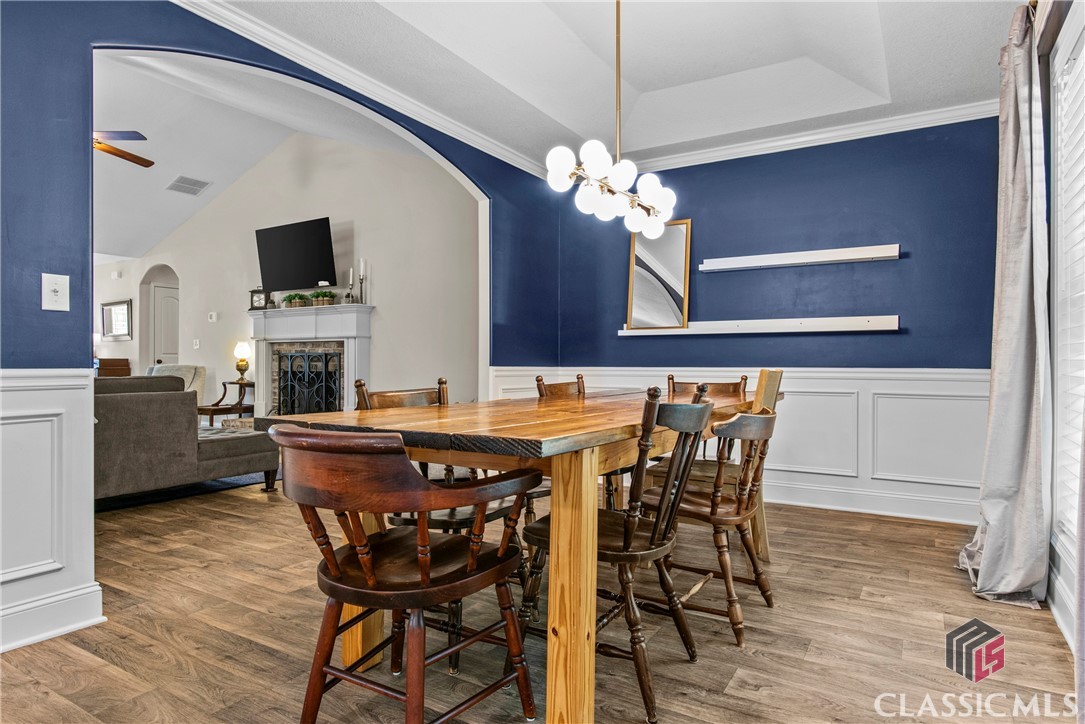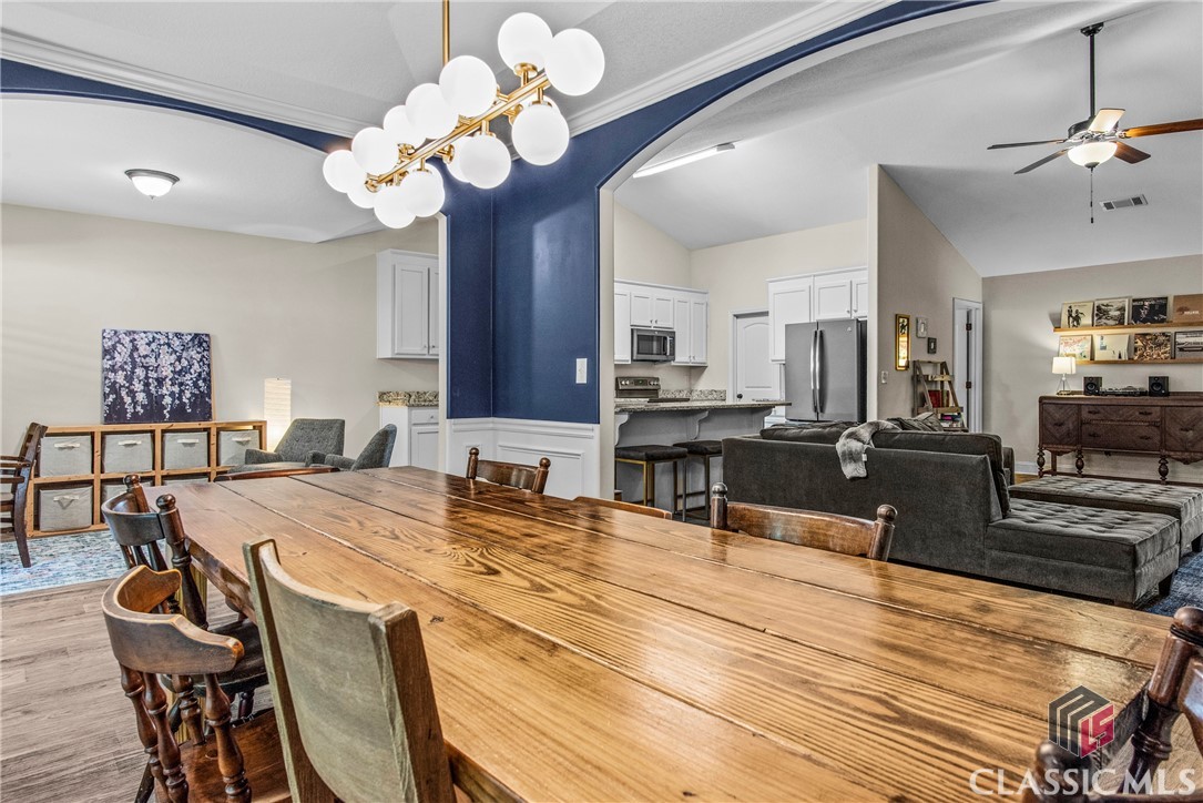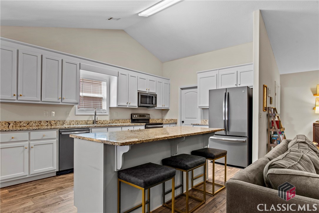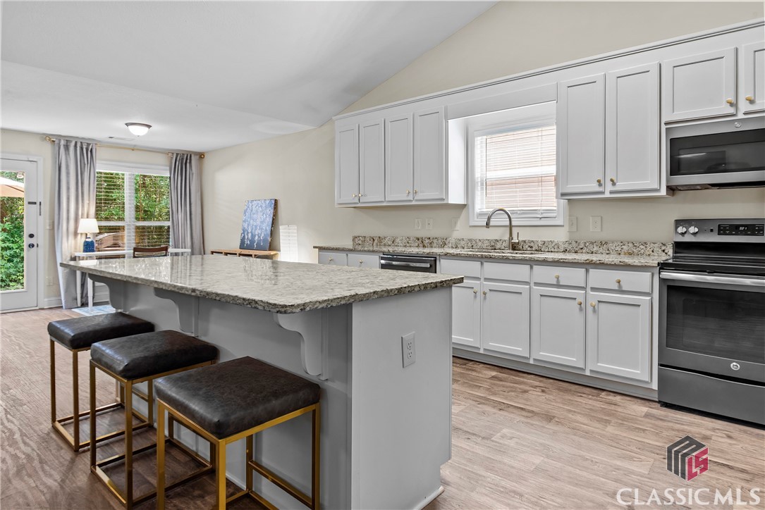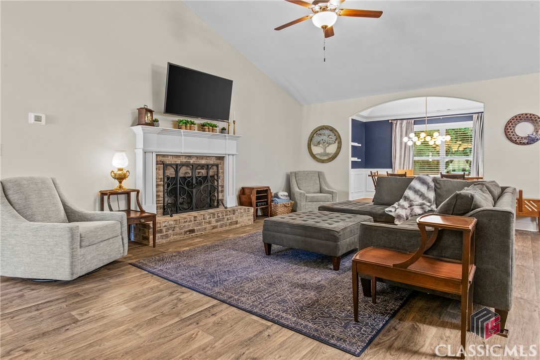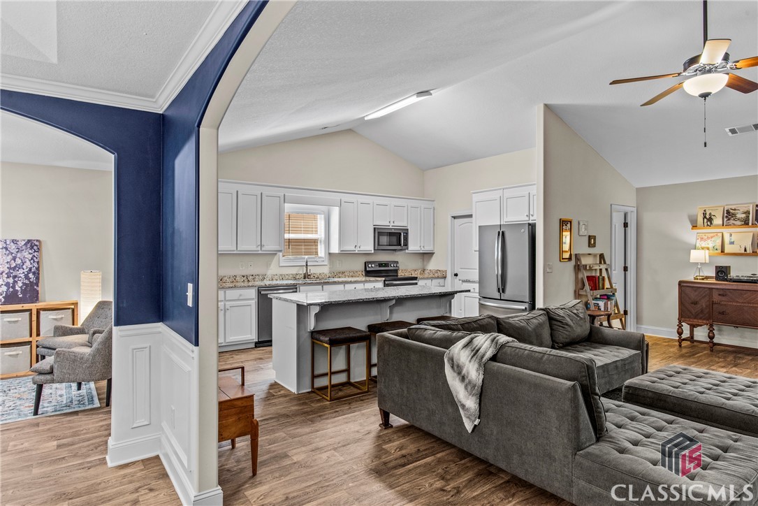 At 8 years young, this modern ranch delivers on space, functionality, and finishes. This one level classic boasts a tasteful craftsman exterior with an open concept interior. The common areas are all inclusive combining a foyer, showcase kitchen, oversized family room, formal dining room, and cozy flex space. Vaulted ceilings and fireplace compliment and complete this comfortable gathering space. Centerstage will be claimed by the timeless white kitchen and its clean lines featuring shaker style cabinets, granite countertops, stainless steel appliances and walk in pantry. The kitchen design maximizes countertop space and incorporates a large island with seating. Four bedrooms, two and half baths, and laundry room conclude the interior. A square footage advantage provides a true master suite for those who love a private retreat.