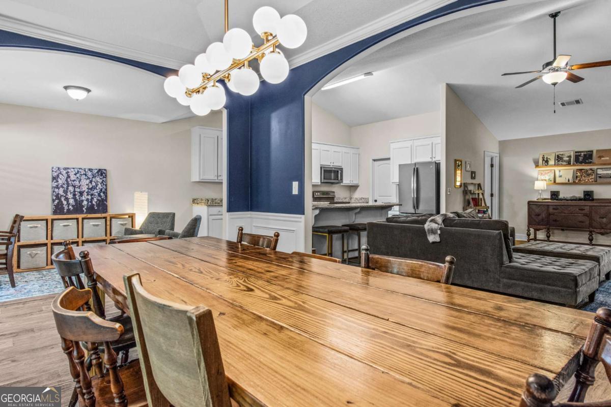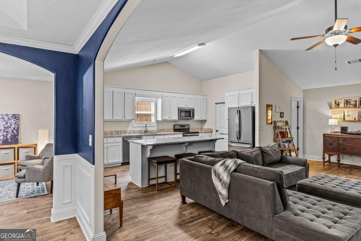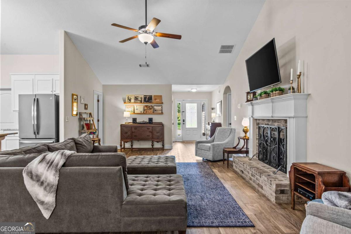 At 8 years young, this modern ranch delivers on space, functionality, and finishes. This one level classic boasts a tasteful craftsman exterior with an open concept interior. The common areas are all inclusive combining a foyer, showcase kitchen, oversized family room, formal dining room, and cozy flex space. Vaulted ceilings and fireplace compliment and complete this comfortable gathering space. Centerstage will be claimed by the timeless white kitchen and its clean lines featuring shaker style cabinets, granite countertops, stainless steel appliances and walk in pantry. The kitchen design maximizes countertop space and incorporates a large island with seating. Four bedrooms, two and half baths, and laundry room conclude the interior. A square footage advantage provides a true master suite for those who love a private retreat.