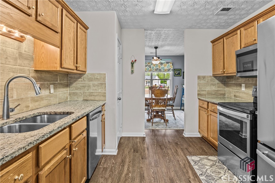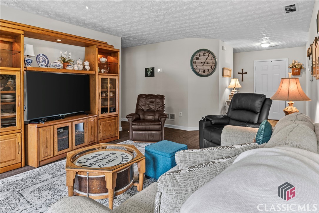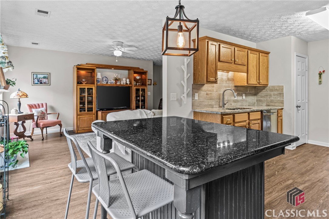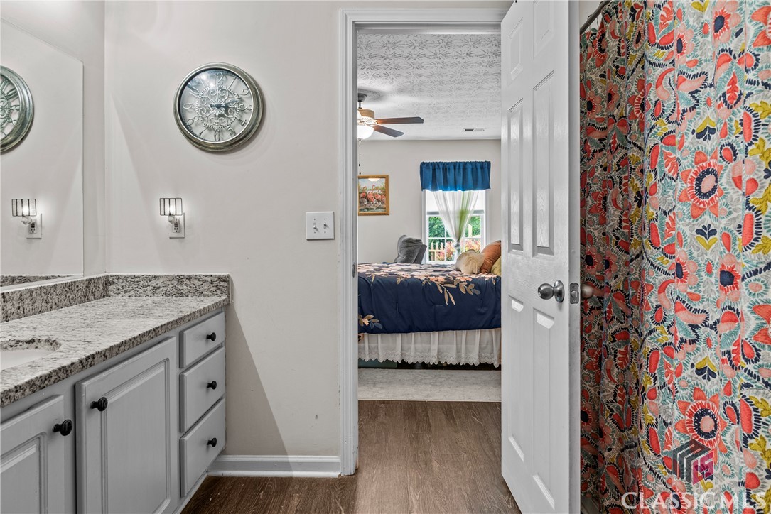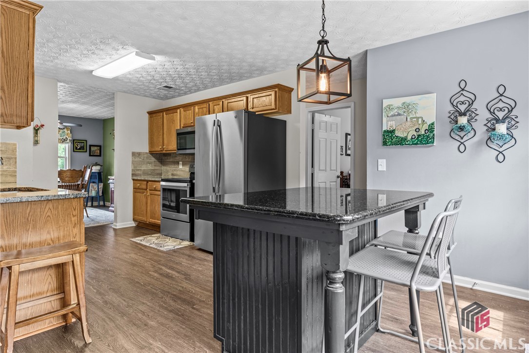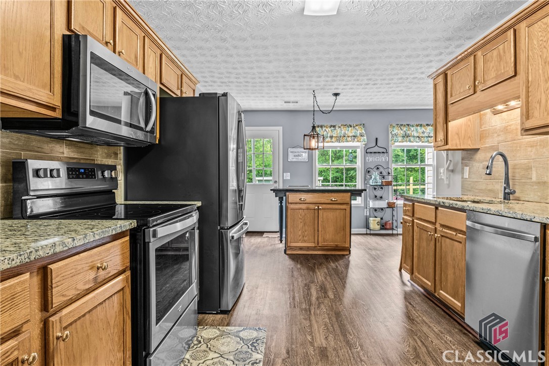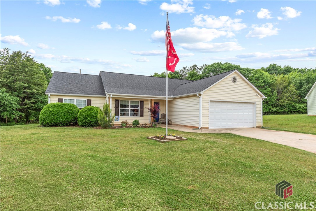 Charming and cozy ranch home in the quintessential town of Monroe, Georgia. This easy flowing single level is a seamless space to enjoy daily life. The flat yard is manageable, blooms with vibrant seasonal flowers that will make you stop and smell the roses. Design favorites include a split bedroom floor plan, kitchen with custom island, large living room spanning from the front of the home to the back, and walk-in laundry room. Updates include granite countertops in the kitchen, newer appliances, and lvp flooring throughout the home. Outdoors extras include a 10x16 shed, fencing, and perimeter lot on a cul de sac.
